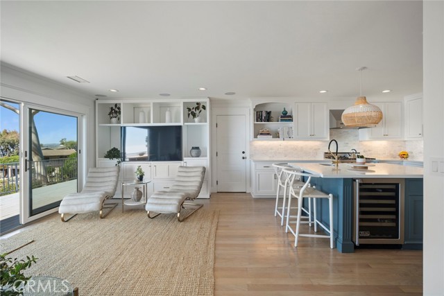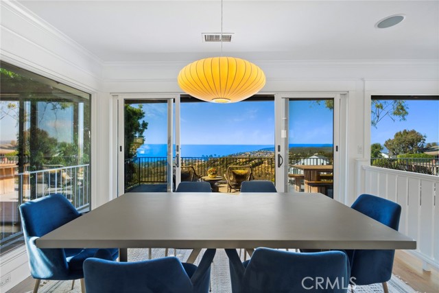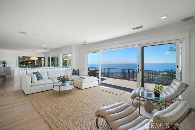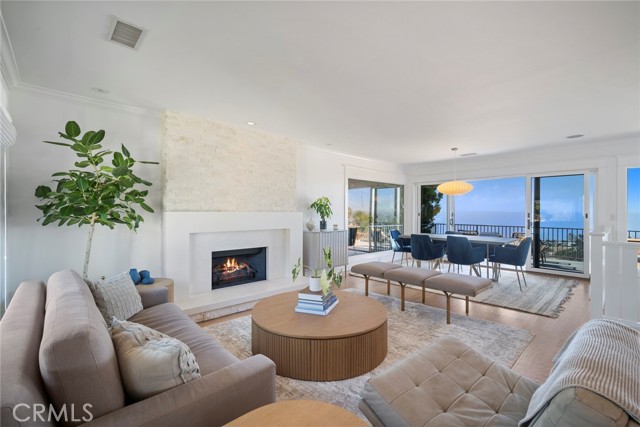 Positioned on one of the most sought-after view corridors in Laguna Beach, 2855 Zell Drive captures a front-row perspective that is nothing short of extraordinary. From its commanding elevation, the residence showcases uninterrupted, cinematic vistas spanning Catalina Island, the full sweep of the Pacific Ocean, sparkling evening city lights, Main Beach’s iconic shoreline, and the coastline extending to Palos Verdes. The kind of view typically reserved for postcards is your everyday backdrop and experienced from nearly every room. A recent refinement of the property introduced a sophisticated blend of modern comfort and elevated coastal style. The kitchen and family spaces were reimagined with new countertops, beautifully refreshed cabinetry, brass details, designer lighting, and upgraded fixtures, creating a polished environment for both daily living and hosting. A statement limestone fireplace, finished with custom millwork and a slab surround anchors the main living area with understated luxury. The home’s enhancements extend well beyond aesthetics. Bathrooms were thoughtfully redesigned with new surfaces, hardware, lighting, and tailored details that evoke boutique-hotel appeal. Refinished hardwood flooring, new designer paint across the interior and exterior, upgraded LED lighting throughout, and a curated selection of new fixtures contribute to a cohesive and elevated atmosphere. Modern conveniences such as an EV charging outlet, appliance upgrades, and enhanced exterior safety vents reflect the level of care invested in the residence. Outdoor spaces were refreshed with new hardscape, landscaping, and thoughtful additions that enhance both curb appeal and livability. Every improvement was made to complement the home’s natural focal point: the sweeping coastal panorama that transitions beautifully from vibrant daytime blues to golden sunsets and shimmering evening lights. Created for the buyer who values refined living and a world-class view, this home offers a turnkey luxury experience in one of Laguna Beach’s most desirable settings.