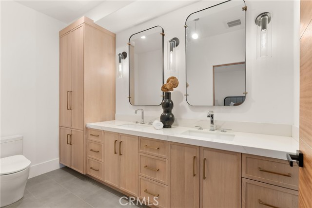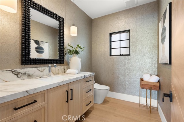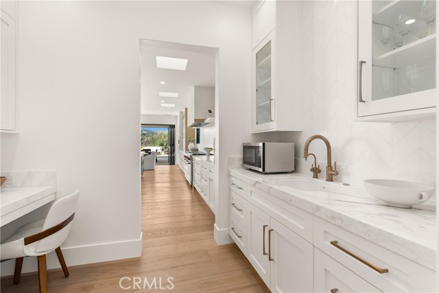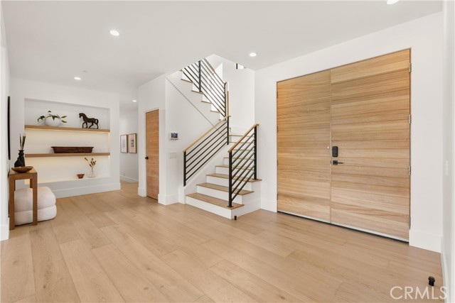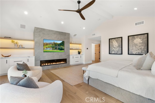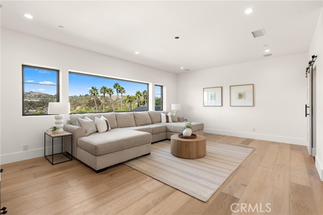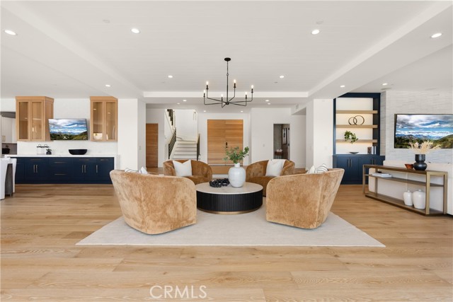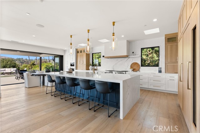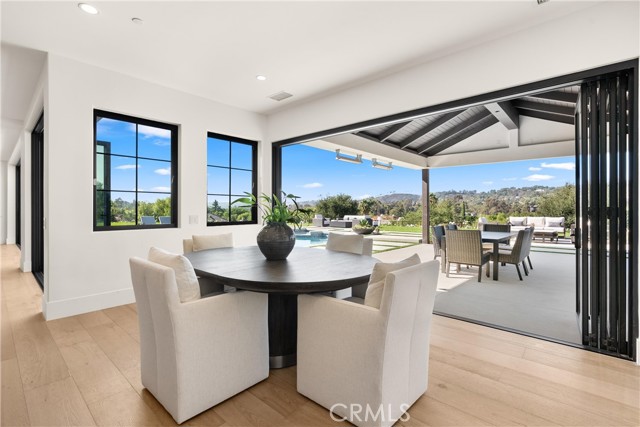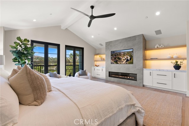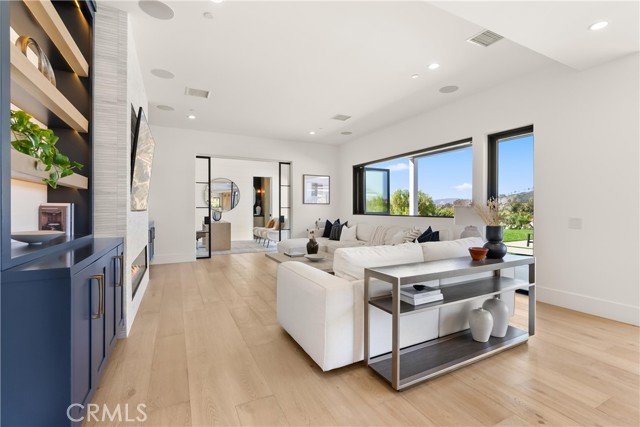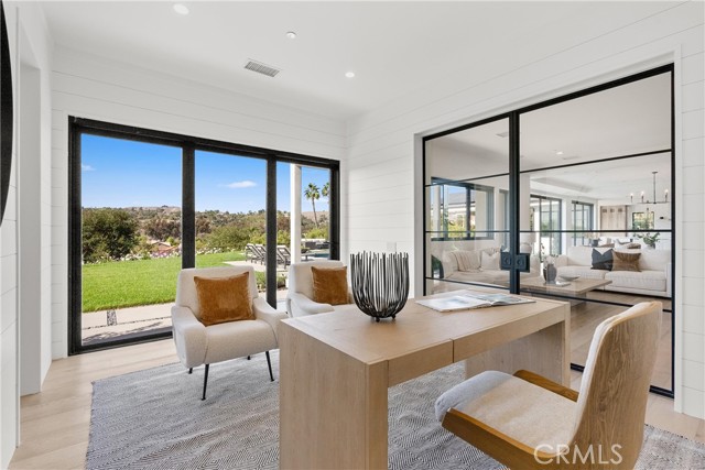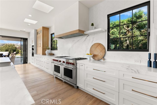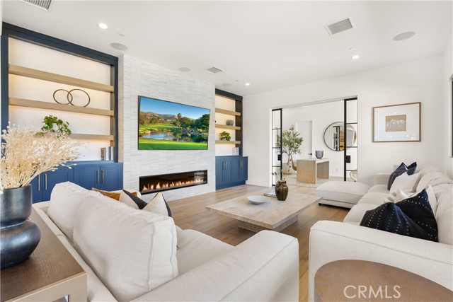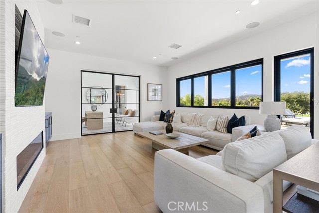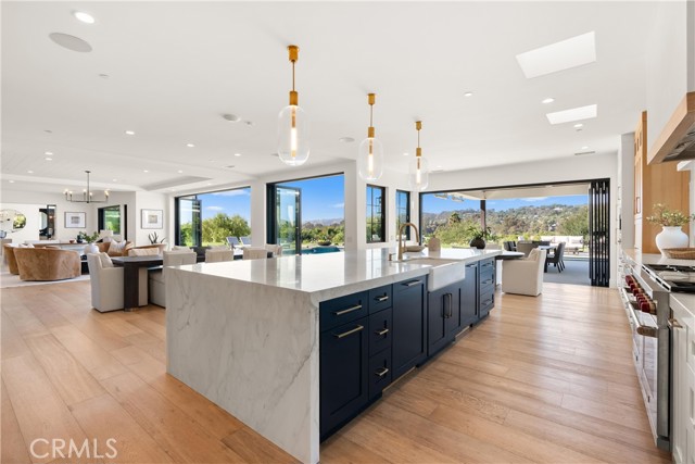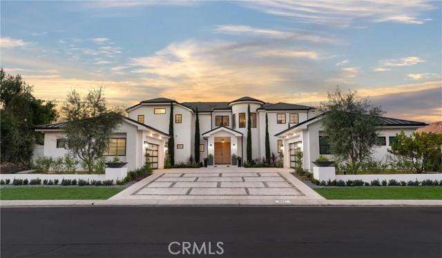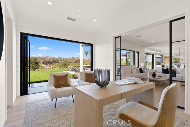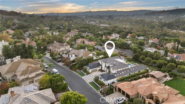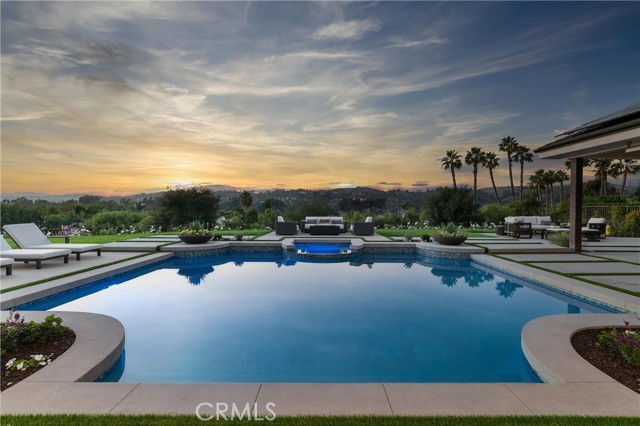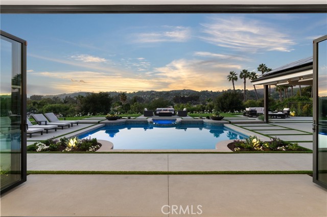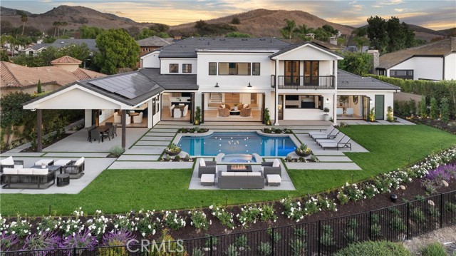 Perched at the end of a quiet cul-de-sac in the prestigious Hunters Creek community, this newly reimagined Modern Farmhouse represents the pinnacle of design, craftsmanship, and California living. Every inch of its 6,400 square feet has been thoughtfully rebuilt to exceed modern luxury standards while preserving warmth and character. Set on a 24,750 square foot lot with sweeping panoramic views of rolling hills, the home offers a rare blend of scale, serenity, and sophistication. Completely reimagined from the ground up with new plumbing, electrical, roof, and four HVAC systems, it combines timeless architecture with advanced performance. Smooth stucco graces the interior and exterior walls while oversized iron clad Marvin and Andersen windows fill the home with natural light and frame spectacular vistas. Inside, white oak hardwood floors, smooth walls, and modern flush doors with silver trim reflect a commitment to detail. The open concept great room features a statement marble accent wall, custom built cabinetry, and five expansive Cantina bifold doors that create a seamless transition to the California Room and outdoor living spaces. The chef inspired kitchen centers around an almost 14 ft Calcutta marble island and adjacent a 60" Wolf dual fuel oven, two 72" Sub Zero refrigerators, and built-in wine cooler by Sub Zero, a Miele coffee system, and both a butler’s pantry and walk-in pantry with custom millwork. Each of the five ensuite bedrooms is a private retreat, including the primary suite which captures sweeping sunset views from its private balcony and features a spa inspired bath with stone finishes and dual vanities. The open riser staircase, sculptural metal railing, and seven inch baseboards reinforce the home’s refined design language. Additional features include a main floor office, bonus room, mudroom, integrated sound system, smart home automation, owned solar, upgraded insulation, and PEX plumbing. Outdoors, the re-pebbled pool and spa are complemented by a water efficient landscape and architectural lighting that highlight the home’s contemporary lines. A four car-garage with modern doors, low HOA fees, and no Mello Roos complete this exceptional property. Every feature, finish, and system has been chosen to create a cohesive expression of modern elegance, comfort, and enduring California beauty.