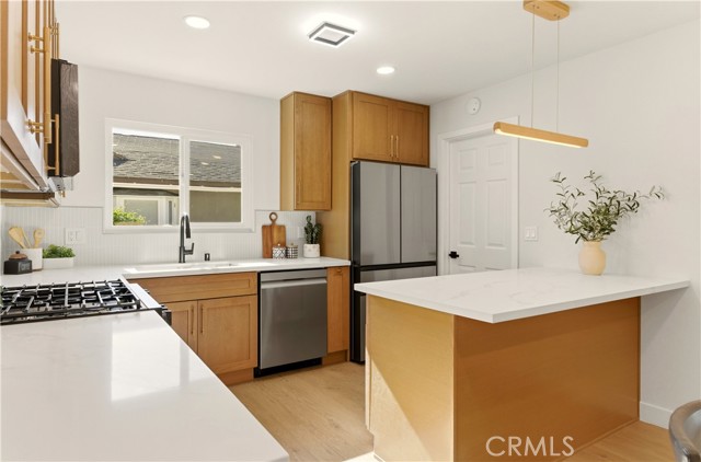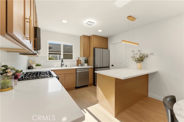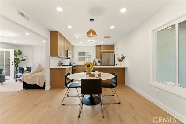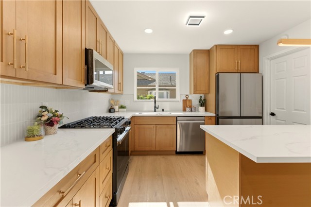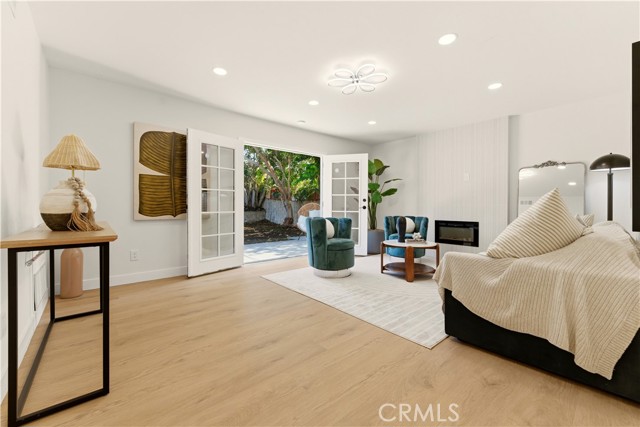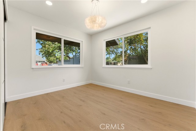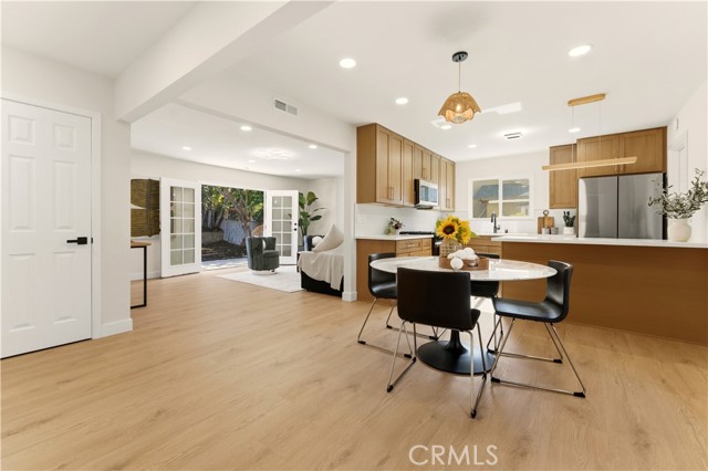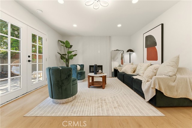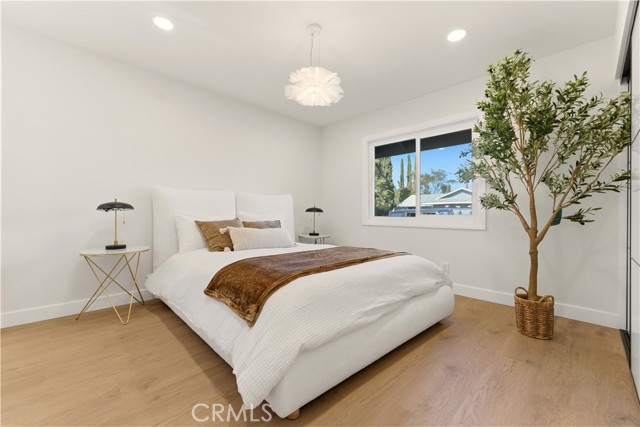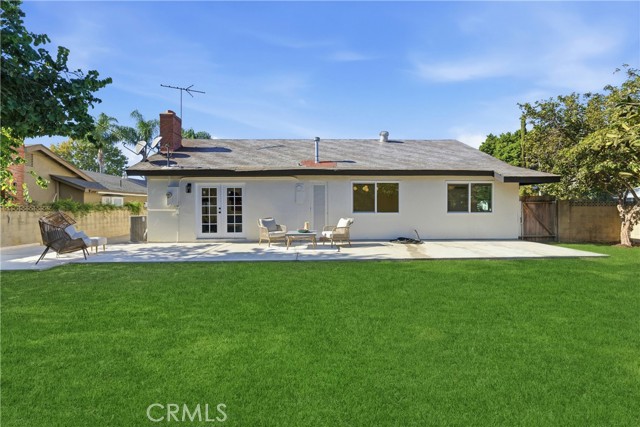 This stunning home offers an exceptional opportunity to reside in one of Orange County’s most sought-after and progressive neighborhoods. The property is meticulously designed with modern upgrades and thoughtful details. Situated on a spacious corner lot, the home boasts a seamless flow throughout its interior. Upon entering, you’ll be captivated by the sophisticated and elegant features, including brand-new hardwood flooring, updated light fixtures, freshly installed windows, and fresh paint inside and out. The gourmet kitchen is a chef’s dream, featuring top-of-the-line appliances, quartzite countertops, custom cabinetry, and a breakfast bar that opens to an informal dining area. The open-concept floor plan effortlessly connects the kitchen and dining area to the expansive family room, which is enhanced by a chic fireplace and French doors that lead to the enchanting backyard. The outdoor space is a true oasis, complete with a variety of fruit trees, including guava, persimmon, pomegranate, orange, fig, and even a rare sugar apple tree. Additionally, the property offers convenient RV parking. The primary suite is a tranquil retreat within the home, featuring a fully renovated bathroom with modern hardware and a walk-in shower adorned with a full backsplash. Two additional spacious bedrooms include large closets and stylish lighting, providing easy access to the shared bathroom with updated fixtures. Additional highlights include recessed lighting throughout, new interior and exterior doors, a new garage door, an upgraded HVAC system, and a new water heater. Every detail has been carefully curated to ensure comfort and style in this single-level masterpiece. No Mello Roos or HOA dues - Welcome to your dream home!