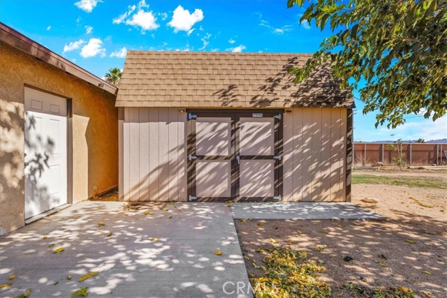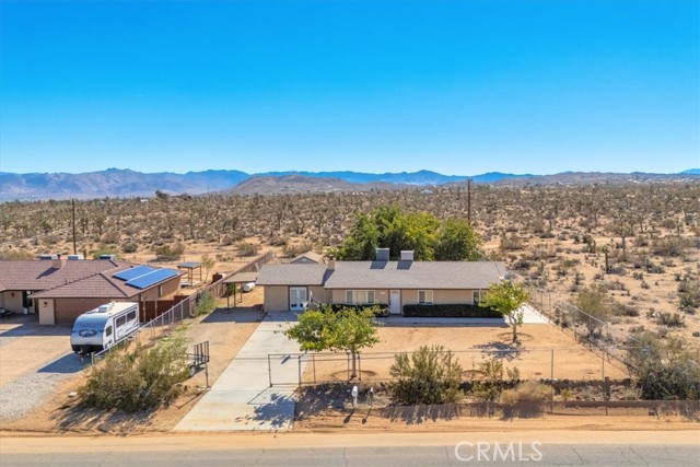 This 4 bedroom, 3 bath home offers 1,662 sq ft (per tax records) and sits on just under a half acre, providing room for toys, pets, garden beds and more. Built in 1983, the home features tile and carpeted flooring, Evaporative Cooling and Central Air. The 4th bedroom was garage conversion, it has a private exterior entrance and its own ensuite bath, perfect as a guest suite, in-law area, teen suite, studio, or home office. The main living area includes a propane kitchen with stainless steel appliances and a pantry. Solar is installed to help lower electric bills (lease to be assumed at closing). Outside you’ll find desert flora & wildlife, stunning star-filled night skies, and a fully fenced yard with room to roam, plus a carport and a utility shed with power. Beautiful shade trees provide relief on warm days, and the quiet neighborhood offers peace and privacy while still being minutes to downtown, Joshua Tree, and Joshua Tree National Park. Highlights: 1,662 sq ft (Realist) 4 Bedrooms / 3 Baths Under 1/2 acre Built 1983 Tile + Carpet flooring Evap + Central Air Propane kitchen w/ stainless appliances + pantry Converted garage bedroom w/ private entry + bath Solar (lease to be assumed at closing) Carport & utility shed with electric Fully fenced, large backyard Desert views with star-gazing nights Quiet area minutes to town & the Park Please include a recent pre-approval letter and proof of funds with your offer. Buyer to verify all MLS information, including but not limited to: permits and uses, bed/bath counts, square footage, school information and enrollment availability. Buyer is advised to independently investigate all aspects of the property, and to verify the accuracy of all information provided through personal inspections and with appropriate professionals to the buyer’s satisfaction. Buyer is solely responsible for verifying water, power, zoning, and county building requirements. Buyers are responsible for confirming the accuracy of all information and are encouraged to conduct their own due diligence or retain qualified professionals.