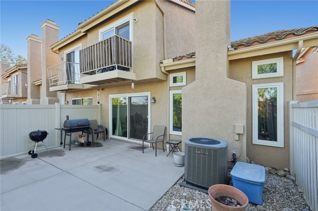 3 bed, 2.5 bath home located in the Sonrisa community is ready for it's new owner. The interior offers soaring ceilings with lots of natural light, newer interior paint, newer interior doors, and all new dual pane windows and sliding door installed in 2022. The living room opens to the dining area with wainscoting and a slider to the private, low maintenance, fully fenced, paved back patio oasis with views of nice surrounding trees and landscaping - a great space for relaxing and entertaining guests. The kitchen has a beautiful coffered ceiling, white cabinetry with lots of storage space, new backsplash, and a new microwave installed in 2023. The kitchen also features direct access to the attached Garage! A half bathroom completes the main floor. All bedrooms are located on the 2nd floor including the large primary suite with private bistro balcony offering backyard and citylight views. The primary suite also has 2 large closets as well as a private ensuite with dual sinks, and there is a full-size hall bathroom with newer tile for the 2 secondary bedrooms to share. The 2-Car Garage has built-in shelving, and the home features ADT Alarms with cameras. Residents also get to enjoy a community pool and spa, and this home is conveniently located near many shopping and dining options as well as schools, and not far from the 71 and 60 Fwys! This charming home is all set for its new owner to create a future full of cherished moments!