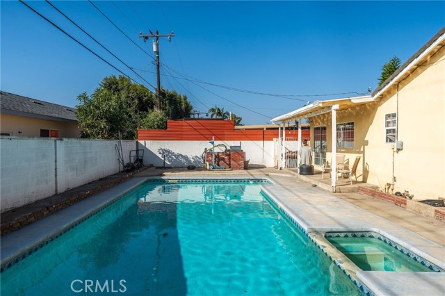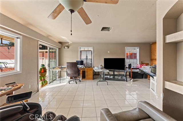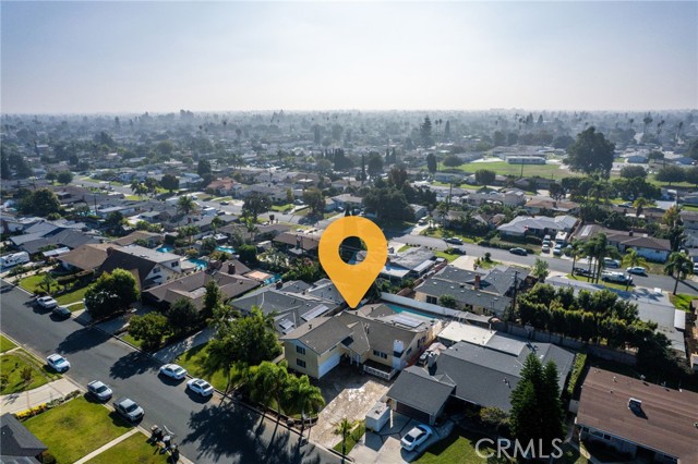Very quiet neighborhood, large home suitable for larger families. Total of 5 bedrooms and 3.5 bathrooms. Almost 2,200 square feet of living space. There are 2 master bedrooms downstairs. Dual paned windows. Laminate flooring in all bedrooms and living room. Ceramic tile in kitchen and family room. Very Bright and Airy with central heating. Back yard with surrounding block walls & a gated pool plus a BBQ island. Property in great location close to schools, shopping, and freeways.