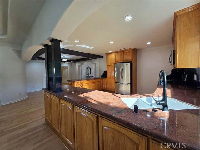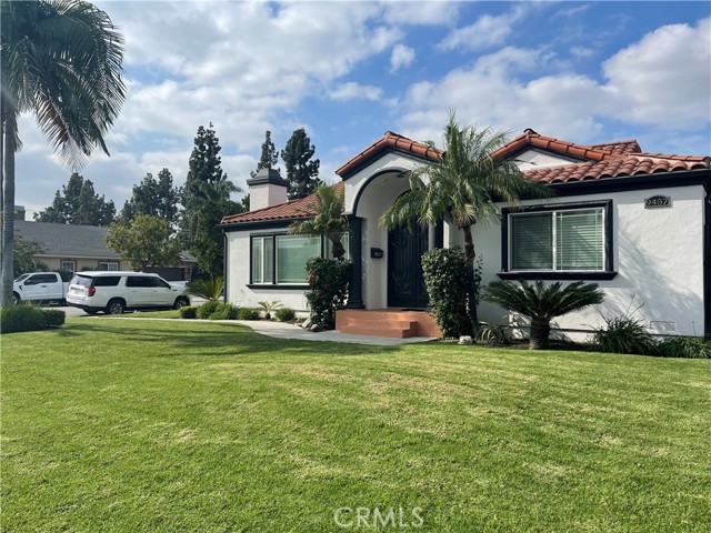 ELEGANT SPANISH MEDITERRENEAN NORTHEAST DOWNEY HOME WITH GUEST HOUSE, A RARE FEATURE IN NORTHEAST DOWNEY! REBUILT/REMODELED FROM THE GROUND UP LINE NEW IN 2005, 9457 Gotham Street offers style and comfort; custom double-wrought iron doors welcome you to foyer with lofty ceilings. Open concept floor plan, perfect for entertaining throughout the house: spacious kitchen with stainless steel appliances and granite countertops, dining, and cozy grand room with iron chandelier, sliding door to balcony offers light and serene views to orange trees. Spacious four bedrooms, den /bedroom with marble fireplace, 2.5 bathrooms, inside laundry room. Master bedroom with walk in closet, master bathroom with dual sinks, granite countertops and new shower stall. New Kohler fixtures, Hardwood floors, tray ceilings, and high vaulted ceilings throughout the home. Separate GUEST HOUSE attached to the 2-car garage with new kitchenette, new floors, walk in closet and full bath with granite countertop! Close to the Schools, Parks, Freeways, Stonewood Mall, Downtown Downey, Hospitals, and Shopping!