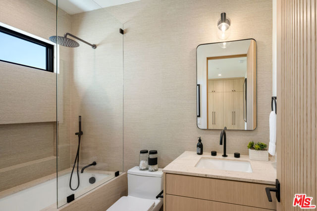 Welcome to your new coastal lifestyle in the heart of Venice, where warm organic finishes, striking architecture, and elevated design converge just blocks from the sand. Inspired by desert-modern aesthetics, this brand-new residence offers rare privacy and effortless indoor-outdoor flow, all wrapped in a relaxed, sophisticated tone that defines modern Venice living. A grand entry opens to an expansive, light-filled floor plan with oversized Italian porcelain tile, a media lounge, formal dining area, and an open-concept kitchen outfitted with Wolf and Sub-Zero appliances, custom cabinetry, a walk-in pantry and an oversized island that anchors the fire-lit living space. Fleetwood-style retractable glass doors dissolve the boundary between indoors and out, unveiling a lush resort-style backyard with a custom pool and spa, built-in al fresco dining, and a fully equipped guest house with corner pocket doors ideal as a creative studio, office, gym, or luxe guest suite. Mature ficus hedges surround the property in complete privacy. Upstairs, floating French oak stairs lead to a sun-drenched primary suite with a private terrace, spa-like bath, custom bar, and a sleek European-style walk-in closet. Three additional en-suite bedrooms, a laundry room, and a central lounge complete the upper level. This smart home features integrated sound, lighting, security, and climate control, alongside energy-efficient systems for modern, sustainable living and thoughtfully curated with high-end designer finishes throughout. Set on a rare oversized lot just blocks from Abbot Kinney, Rose Avenue, Erewhon, and the Venice Boardwalk, this home is the perfect blend of architectural distinction and coastal convenience. Whether you're entertaining under the stars or unwinding by the pool, every inch of this home is designed to elevate Venice living to its highest form.