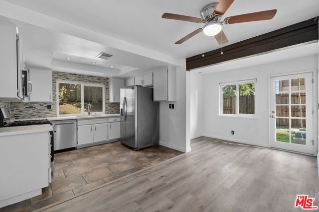 Welcome to this charming two-story home located in a quiet Rancho Cucamonga neighborhood just steps from a beautiful community park. This property offers an open floor plan with vaulted ceilings, exposed beams, a cozy fireplace, and abundant natural light. The kitchen features white cabinetry, stainless steel appliances, and a window overlooking the backyard. Sliding doors lead to a spacious fenced yard with a concrete patio and plenty of room to build an ADU, garden space, or outdoor entertainment area. All bedrooms are generously sized, and the attached garage provides convenient parking and storage. Close to schools, shopping, Victoria Gardens, dining, and major freeways. Vacant and easy to show. Come take a look!