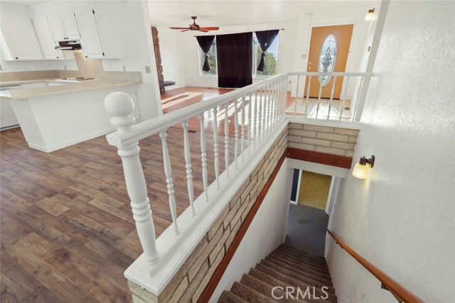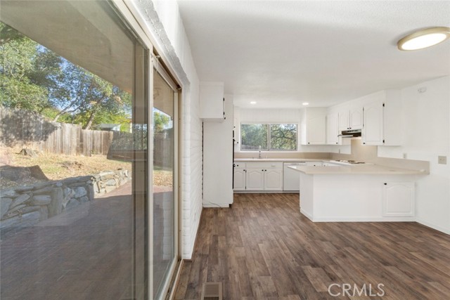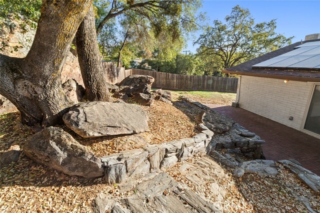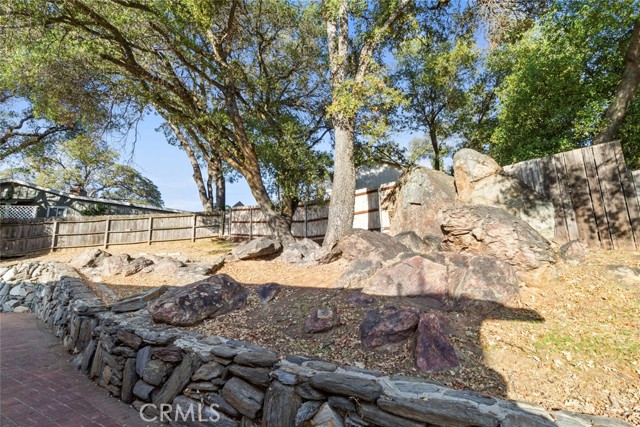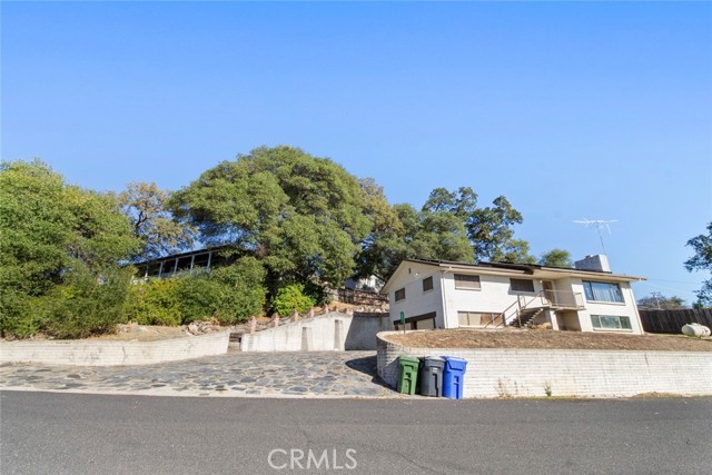 Perched among mature oaks and custom stonework, this beautiful two-story home blends mid-century charm with modern updates and versatile living spaces. This unique home showcases thoughtful craftsmanship and unique architectural details that set it apart from anything else you've seen. Upstairs, you'll find a bright, inviting living space with large picture windows that flood the home with natural light. The open layout connects the living room, dining area, and kitchen seamlessly, creating a perfect environment for gathering and entertaining. The living area features fresh paint, warm flooring, and hillside views, while the kitchen boasts updated counters, freshly refinished cabinetry, and a large window that overlooks the oak-filled backyard. Down the hall, two spacious bedrooms feature generous proportions and beautiful natural light, with peaceful views of the property's natural landscaping. The hallway bathroom has been recently remodeled with a new tub and shower surround, new fixtures, and modern lighting for a clean, bright feel. The primary suite offers ample room, dual windows for light and air, and a freshly remodeled en-suite bathroom complete with a new vanity, new shower surround, and tasteful finishes. Downstairs, a completely separate living area provides incredible versatility. This studio-style space features a huge living area anchored by a custom fireplace, sleek concrete floors, fresh paint with accent wall, and new lighting throughout. The attached kitchenette and full bathroom make it ideal for multi-generational living, a private guest suite, or potential rental income - a perfect opportunity for flexibility and independence. Outside, the backyard is an absolute showpiece - a one-of-a-kind combination of artistry and nature. Handcrafted local stone retaining walls, large brick patios, and massive decorative boulders weave together into a tranquil, low-maintenance landscape under the shade of mature oak trees. It's the kind of outdoor space that feels timeless, peaceful, and truly connected to its surroundings. Additional highlights include a two-car garage, solar energy system for efficiency and savings, and a location in one of the most desirable pockets of the foothills - where privacy, craftsmanship, and character converge. Welcome Home!!!