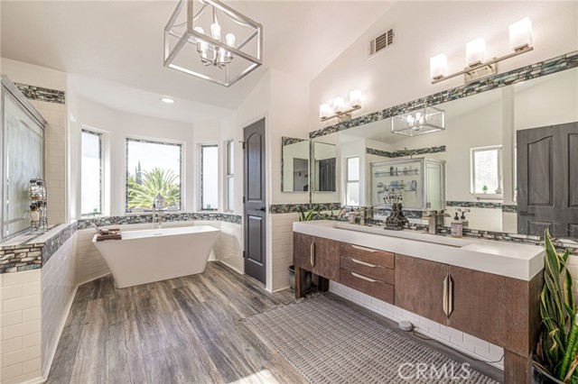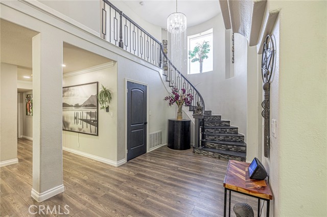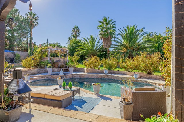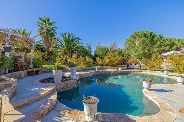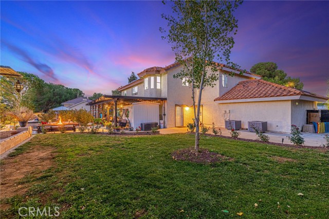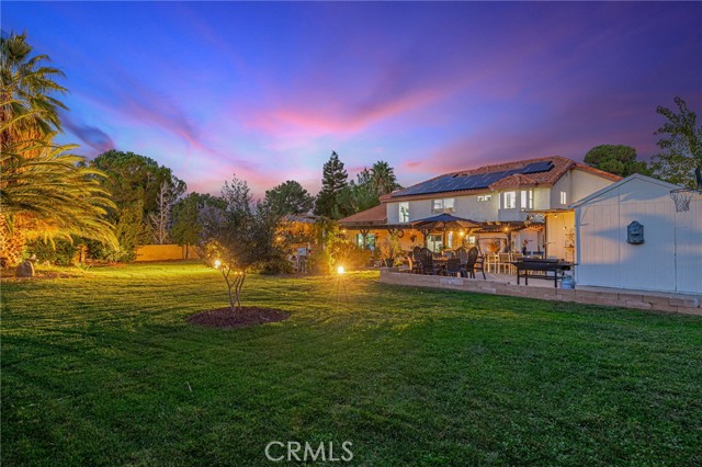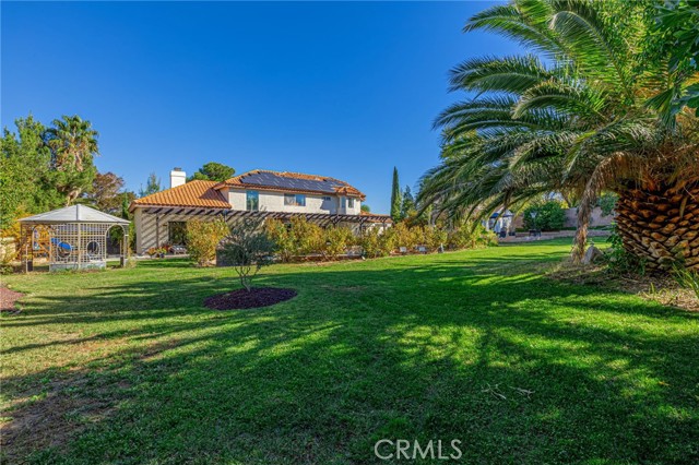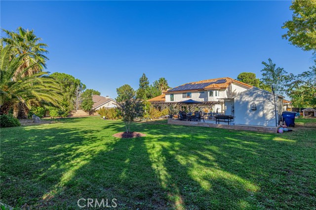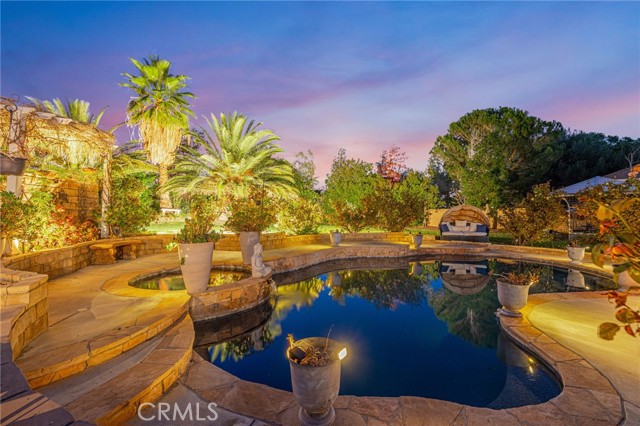 Welcome to a residence where elegance, efficiency, and entertainment unite in one stunning property. Nestled in the prestigious West Palmdale/Quartz Hill area, this luxury estate offers 4 bedrooms, 3 full baths, and 3,218 sq. ft. of refined living space, plus an additional 200 sq. ft. office/flex room not included in the total. Office upstairs can double as 5th bedroom(by adding a closet), provides versatile options for work or leisure. Set on a beautifully landscaped 21,212 sq. ft. lot, this home is designed for resort-style living. Enjoy a Pebble Tec pool and spa, 8-person sauna, covered patio, and multiple outdoor spaces for dining, games, and relaxation under breathtaking sunsets. 46 owned solar panels with two backup batteries, Tesla app integration, and a smart thermostat system for HVAC and irrigation ensure modern energy efficiency and comfort. Through elegant double doors, you're greeted by a grand staircase, chandelier, and bright open floor plan. The formal living (with sliding doors to the backyard) and dining rooms, feature engineered plank flooring, and exquisite architectural details throughout. A downstairs guest suite with nearby full bath offers privacy and flexibility. The primary retreat features a cozy fireplace in the blt-in cabinet (which stays), spa-inspired bath with soaking tub, separate shower, and dual sinks. Upstairs includes additional bedrooms plus a flex space perfect for an office or studio. The gourmet kitchen includes newer stainless appliances (refrigerator incl.), and the laundry room with built-in desk comes with washer and dryer. A two-car garage provides ample storage and access to the bonus office/fitness room. Surrounded by roses, palm, pomegranate, fig, and apple trees, custom lighting, and multiple entertaining zones, this estate offers a rare blend of luxury, sustainability, and sophistication—a true sanctuary close to top-rated schools, parks, and shopping.