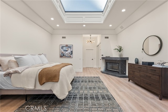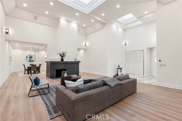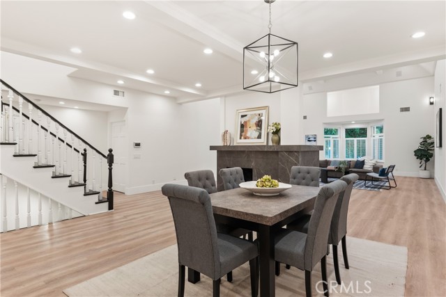 Welcome to 14713 Valleyheart Drive - where modern sophistication harmonizes with the timeless charm of Sherman Oaks. This exceptional residence offers 5 bedrooms, 3.5 baths, and over 5,000 square feet of refined living space, set on an 8,816-square-foot lot. Step inside to discover soaring ceilings, exposed wood beams, and an abundance of natural light cascading through a dramatic skylight. Completely reimagined, the home now showcases a modern open-concept design, curated with designer details and exquisite finishes throughout. Anchoring the main living area, a striking double-sided charcoal porcelain fireplace seamlessly connects the living and dining spaces, setting the tone for both comfort and sophistication. The chef’s kitchen is a true showpiece, featuring state-of-the-art Sub-Zero and Wolf appliances, a marble backsplash, an expansive center island, and an inviting breakfast nook perfect for morning gatherings. The primary suite is a private retreat - complete with its own skylight, fireplace, walk-in closet, spa-inspired bath, and a serene balcony overlooking the backyard. Step outside to your personal oasis: a sparkling pool, relaxing jacuzzi, and built-in BBQ, all designed for effortless entertaining and California living. A recently converted 900-square-foot basement adds an impressive entertainment area, ideal for a media room, gym, or play space. Perfectly located near Ventura Boulevard, fine dining, and shopping, within the sought-after Kester Avenue Elementary School District, this home embodies convenience and contemporary luxury.