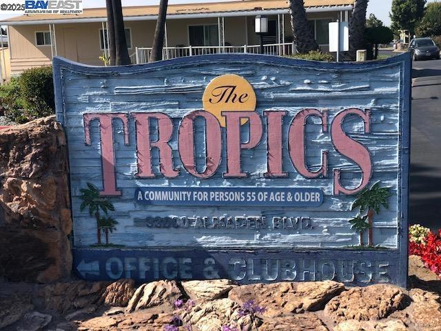 Affordable Mobile Home in the Tropics (adult park) features: 2 bedrooms; 2 full baths; updated kitchen with granite countertops, stainless steel appliances, and newer cabinets; separate living and family rooms; dining area with built in hutch; primary suite with private bath; tiled flooring in kitchen; laminate flooring in living room & family room; indoor laundry with front loader washer & dryer; dual pane windows; 2 storage sheds; near guest parking & more. Fireplaces: NO