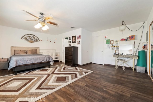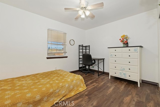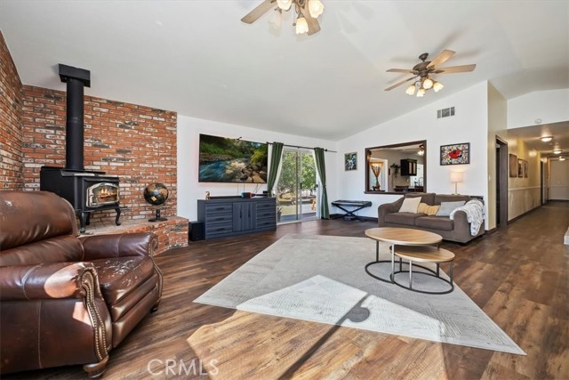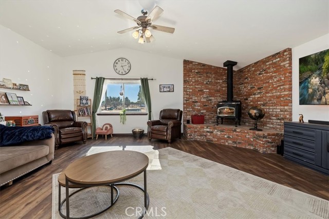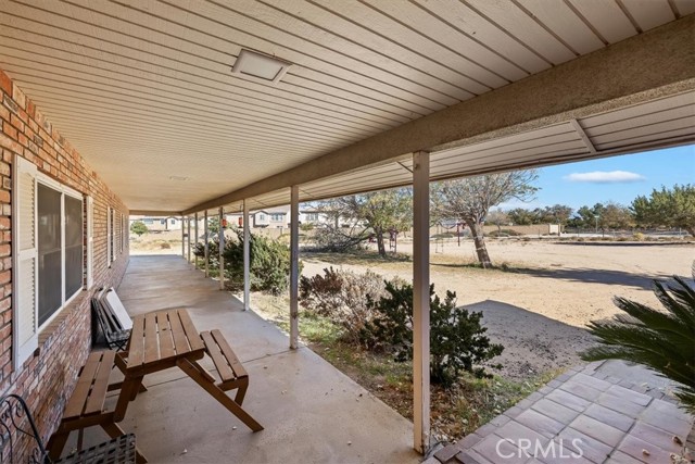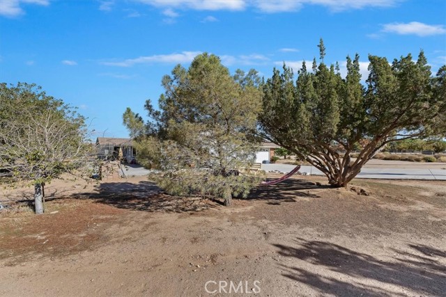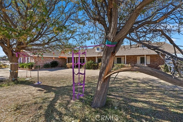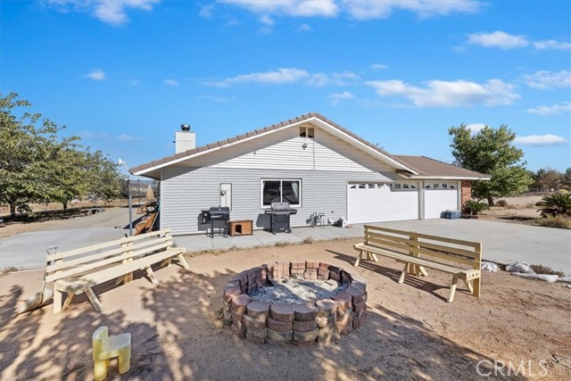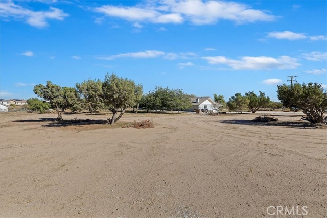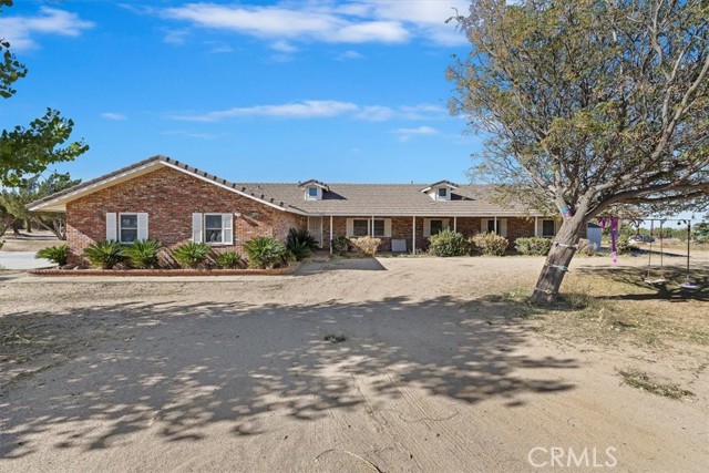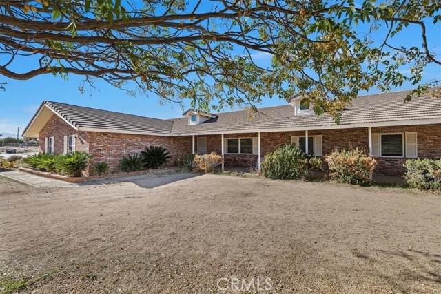 Welcome to this stunning ranch-style home, perfectly situated on a sprawling 98,010 sq ft lot with breathtaking desert mountain views. This spacious 4-bedroom, 2-bath property offers 2,388 sq ft of open living space, featuring beautiful laminate flooring throughout. The modern kitchen boasts quartz countertops, a chic herringbone tiled backsplash, and stainless steel appliances—ideal for gatherings and culinary creations. The inviting family room includes a cozy wood-burning stove, perfect for relaxing evenings. The large main bedroom offers plenty of space and an attached spa-like bathroom with a separate soaking tub, tiled shower, and dual vanity, creating a luxurious retreat. The three-car garage has been transformed into a versatile mancave, providing plenty of space for hobbies or entertainment. The expansive driveway can comfortably accommodate multiple RVs, boats, or off-road toys, with direct access to dirt paths for outdoor adventures. Enjoy ample room to add a pool, an ADU, or customized upgrades. The desert landscape creates a picturesque backdrop, offering tranquility and stunning mountain vistas. Don't miss your chance to own this exceptional property—schedule a visit and make this home yours today!