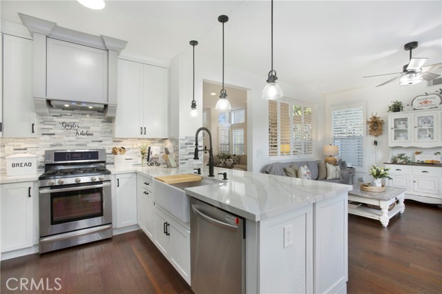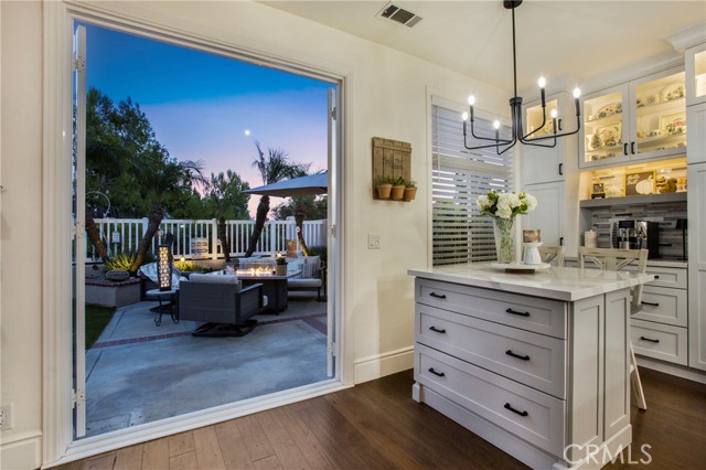 Incredible opportunity with this impeccably maintained & recently upgraded 'end unit' 3 bedroom, 2.5 bath (approx 1900 sqft) residence in the highly sought after community of Cantora, Aliso Viejo.First time offered to the market, the original owners have lovingly created a home that blends modern style living with comfort & functionality. This floorplan creates a light & bright, & open & spacious main floor with open plan formal & informal living & dining spaces. A beautifully remodeled kitchen(2022) is a chef’s dream with Cambria quartz countertops, abundant soft-close cabinetry, pull-out shelving, matching stainless steel appliances, a matching Cambria quartz island with additional seating options. Contiguous to the kitchen is the family living area with stacked stone gas fireplace & French doors that flow out to the ‘piece de resistance’–the fabulous rear yard! One of the largest in the community, the backyard is afforded the feeling of an abundance space being contiguous to an "association maintained" park area. A private oasis with panoramic views, generous entertaining space & water saving artificial turf installed 2019. Enjoy year-round fresh herbs & vegetables from raised ‘potager’ garden beds, with vertical trellis, raised flower beds & custom enclosed stucco shed. Upstairs, the stairwell & hallway feature custom raised-panel wainscoting, & a spacious loft adds approx 180 sqft of flexible living space as a home office/ workout space or den. Fully remodeled in 2025 the primary bedroom & bathroom suite include new cabinetry, quartz countertop, tile flooring & shower, updated plumbing fixtures,bedroom flooring & fresh paint. The family bathroom has been tastefully updated with remodeled shower/tub & shiplap paneled wall. Secondary bedrooms feature custom shiplap accent walls,ceiling fans, & 1 bedroom features a deluxe closet organizer with ‘barn style’ doors. Additional features include community-wide PEX re-piping(2016), direct access 2 car garage with new door opener & spring, custom cabinets, ChargePoint EV charger, front & side yard/common area landscaping(2025). Nearby Foxborough Charter School & National Blue Ribbon’ awarded Aliso Viejo High School. Outstanding proximity to Aliso Viejo Town Center with retail and entertainment complete with movie theatres, restaurants, Ralph’s, Trader Joes & newly opened 99 Ranch Market, nearby walking trails and parks, & minutes away to the 5 freeway & 73 Tollway. Don’t miss this rare opportunity!!