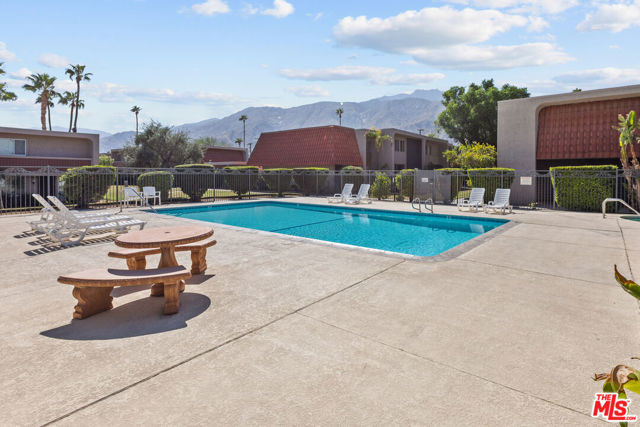 Welcome to Indian Canyon Gardens, a well-maintained community with a cool, retro-modern 70s vibe just five minutes from downtown Palm Springs' shops, dining, and entertainment. Adjacent to the iconic Racquet Club Estates, the gated community features two pools, two spas, a dog park, and beautifully maintained desert landscaping. This two-story townhouse offers 3 bedrooms and 2 baths across 1,344 square feet, plus a covered two-car carport with built-in storage and the advantages of fee land (you own it!) and low HOA dues. Remodeled about two years ago with new HVAC, new tankless water heater, new luxury vinyl plank flooring, new kitchen cabinets and quartz countertops, new bath fixtures and dual flush toilets, new LED lighting, and fresh interior paint. The open kitchen includes a Viking refrigerator and Thermador range with a stainless backsplash. Enjoy your south-facing private patio for morning coffee and gorgeous mountain views, cool off in one of the community's two sparkling pools, or unwind in the spa under the stars. Offered turnkey furnished (with minor exclusions), this home is ready to enjoy or lease for seasonal rentals - the perfect Palm Springs retreat!