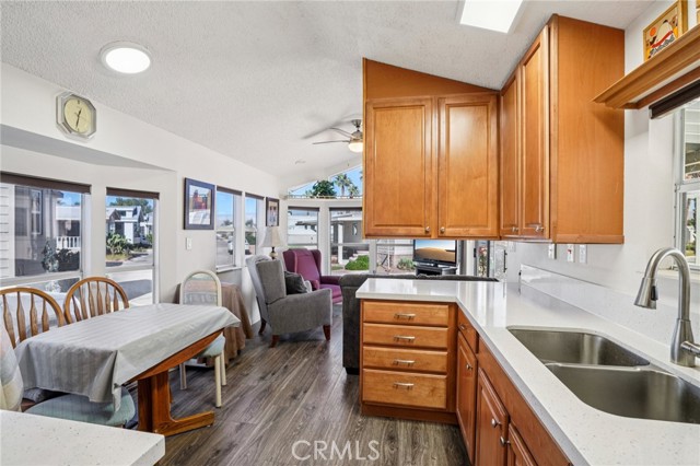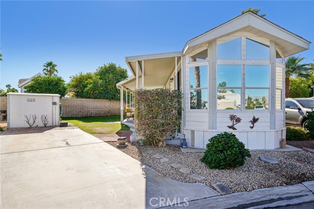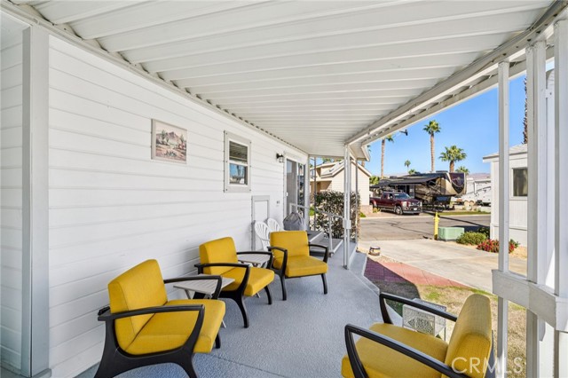 Your perfect entertainment spot. This unit is on a large private lot with a block wall behind, but not on Avenue 49, so no road noise. The deck is also huge. Inside you'll find the majority of the coach was renovated. The bathroom was updated, all the floors were replaced, new electrical & plumbing, and a new dream kitchen. The cabinets are so convenient with soft close and pull out drawers for easy reach. Yes, the countertop is quartz. Check out the coffee/breakfast bar. Useful and stylish. This is a very desirable location in an equally desirable park. Tons of activities to get involved in. There is pickleball, shuffleboard, water sports, card games, billiards room, quilting, concerts at the pool, guided tours to local and regional sites, competitive annual games and so much more. Act now and winter in style.