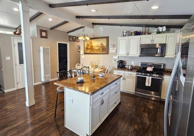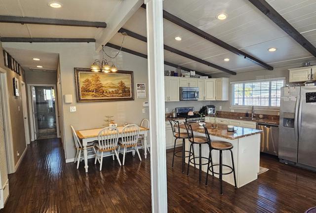 Welcome to your California-Contemporary dream home in the desirable Glen Eden neighborhood! This beautifully updated 3-bedroom, 2-bath residence offers approx. 1,128 sq. ft. of light-filled living space with soaring vaulted ceilings, exposed beams, and gleaming wood floors. The remodeled kitchen showcases a central island, sleek modern finishes, and recessed lighting. Both bathrooms have been tastefully upgraded, and the versatile enclosed patio adds extra spaceperfect for a home office, playroom, or fitness area. A newer composition shingle roof (installed last year) adds peace of mind, while the low-maintenance yard on an approx. 5,000 sq. ft. lot is ideal for relaxed entertaining. Conveniently located near Hwy 92, I-880, BART, parks, schools, shopping, and Chabot College, this home combines style, comfort, and commuter-friendly access. Dont miss this exceptional value in one of Haywards most sought-after neighborhoodssee it before its gone!