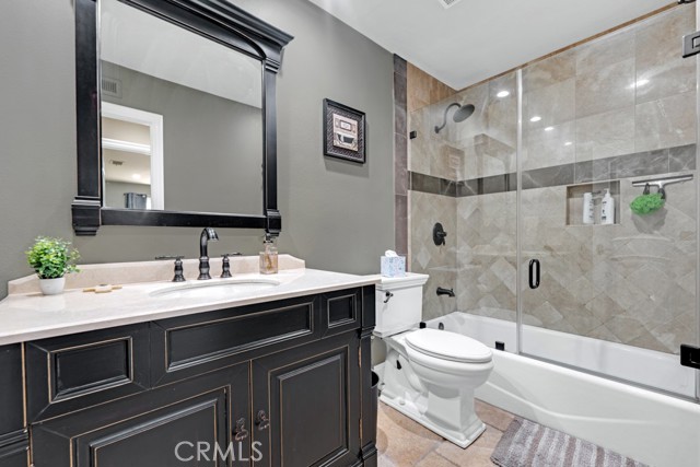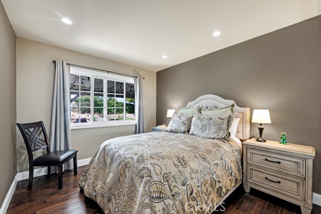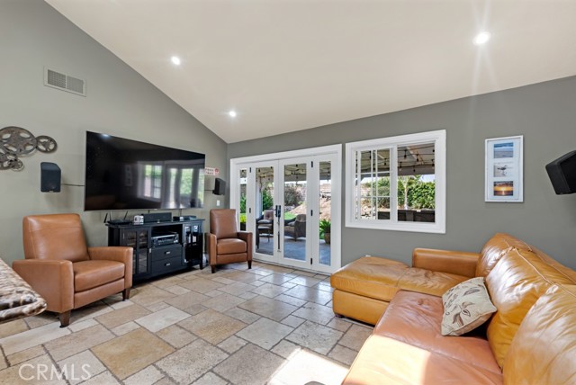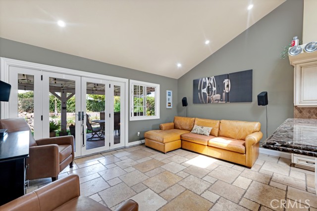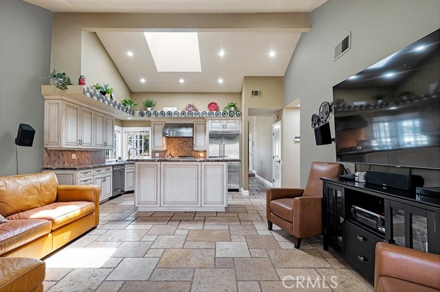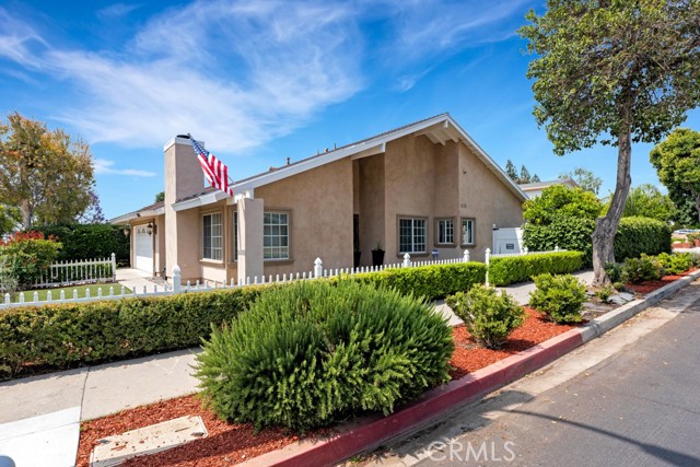 Charming, Updated Chatsworth Home On A Corner Lot! The beautifully remodeled kitchen is a showpiece, with marble counters, kitchen island & breakfast bar, Viking refrigerator/freezer, Viking stove/oven & range hood, plenty of counter top and cabinet space, and a skylight. The kitchen opens to the family room with a vaulted ceiling and French doors leading to the back yard - truly the heart of the home. Formal dining room with a vaulted ceiling. Formal living room with a vaulted ceiling and cozy fireplace and corner windows that make this a light and bright space. The primary suite features two closets & upper cabinets and a vaulted ceiling. The attached primary bathroom features a custom dual sink vanity and a large step in shower. Two additional spacious bedrooms. A remodeled full bathroom in the hallway. Smooth ceilings throughout. Dual pane windows. Recessed lighting. Travertine and engineered hardwood floors. Wired for an alarm system. Large, direct access, two car garage with the laundry and plenty of storage cabinets. Lots of curb appeal with a white picket fence surrounding the drought resistant front yard featuring a turf lawn area and a drip irrigation system for the plants and flowers. Huge back yard with a covered patio, spacious lawn area, and a koi pond with a waterfall feature. A great flow inside and out for gatherings and entertaining! Seller owned solar. Prime Chatsworth location. A definite must see!