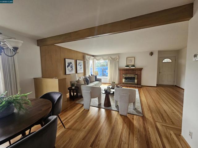 Rare opportunity loved Original owner 1956 mid century home 1st time on mkt. All large spacious rooms, formal dining room, big kitchen w/ eat in space, large hall bathroom w/ old school tile in great shape, beautiful hardwood floors were carpeted since 1956, just refinished, new paint, all bedrooms are large w/ big closets. Nice size back yard. All level front and back yards and house hard to find like this in East Richmond Heights. The home is surprisingly bright and spacious inside. Not many opportunities like this.