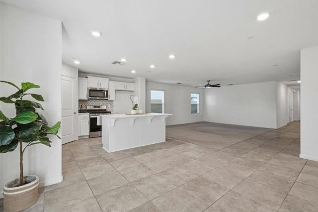 Beautiful single-story home with four bedrooms and three baths. Features a beautiful gourmet kitchen with an island, quartz countertops and stainless-steel appliances. The kitchen looks out to the spacious great room and dining area; it offers an amazing open concept living spaces. The owner's suite, split from the secondary bedrooms, provides that extra bit of privacy and comes complete with a large walk-in closet, dual vanity sinks and walk-in shower. Low maintenance back yard, Owned Solar System and Water softener system. Close to shopping areas and easy access to freeways.