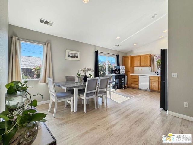 Proudly presenting a turnkey home in the highly sought-after north of Mission Lakes area of Desert Hot Springs. This updated residence features a bright floor plan with 2 bedrooms, 2 bathrooms, and a versatile den with built-in bookshelves ideal for a home office or guest space. Both front and back yards are low maintenance. An attached two-car garage with direct access adds convenience, in a quiet, family-friendly neighborhood just north of Mission Lakes Boulevard.Enjoy panoramic San Jacinto Mountain views from multiple rooms and outdoor spaces. Conveniently located near Bella Vista Elementary and Painted Hills Middle School, with Palm Springs just a short drive away for dining, shopping, and entertainment. No HOA dues offer financial flexibility and fewer restrictions. This turnkey residence is ready for immediate occupancy, with a smart layout that maximizes living space and a low-maintenance design that minimizes upkeep. The den can serve as a home office, media room, or guest suite, providing versatility and single-story living. This property represents strong value in a high-demand Desert Hot Springs market.