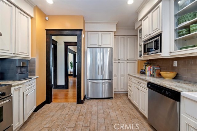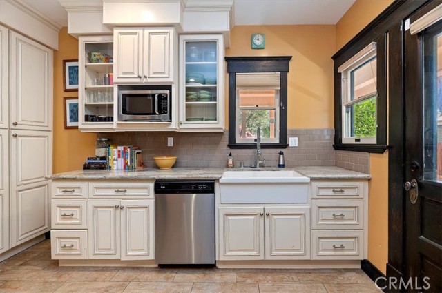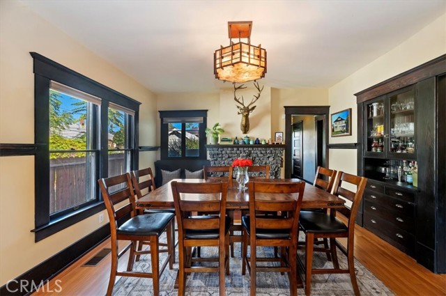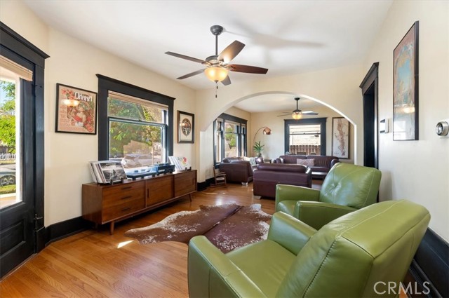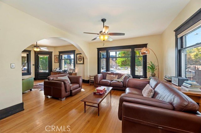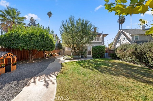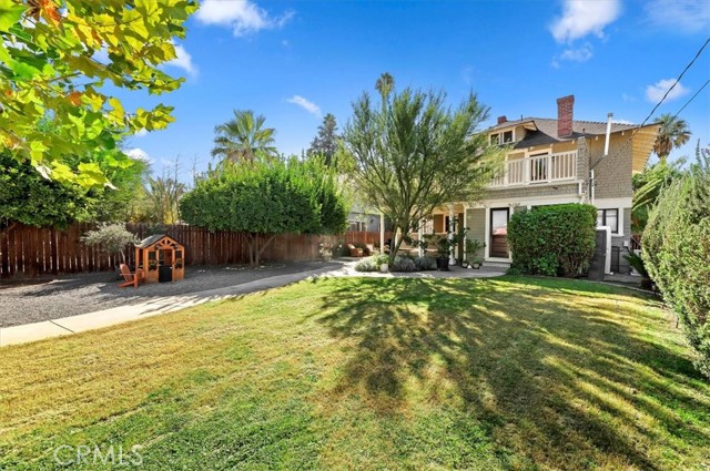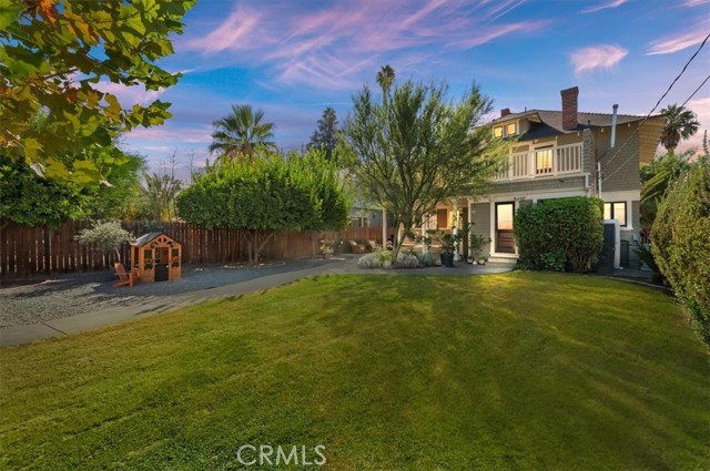 Where California historic charm meets modern luxury. This home has been awarded the Mills Act Contract. The Mills Act is a California program that offers significant property tax reductions to owners of qualified historic homes in exchange for preserving and maintaining their property’s historic character. It’s a valuable incentive that helps homeowners save money while protecting local architectural heritage. Built in 1907 and nestled in the Evergreen Quarter Historic District and within the Downtown Specific Plan, this exquisite American Foursquare residence blends timeless craftsmanship with thoughtful modern updates. Perfectly positioned within walking distance of the Mission Inn, Fox Theater, Riverside Art Museum, Riverside Public Library and the city’s best restaurants, this home captures the essence of Riverside’s architectural and cultural heritage. As you approach, you’re welcomed by two stately entry points and a newly stained porch, the perfect setting for morning coffee or evening gatherings under the shade of mature trees. Step inside to a gracious formal sitting room, seamlessly flowing into a warm family room with rich woodwork and original detailing. The formal dining room is a showpiece of historic elegance, featuring built-ins and a brick fireplace crafted from bricks from the Mission Inn itself. The spacious kitchen combines timeless design with modern convenience, while a beautifully updated downstairs bath and separate laundry room add function and charm. Upstairs, you’ll find four spacious bedrooms, each with original moldings, hardwood floors, and abundant natural light, as well as two elegant baths that continue the home’s harmony of old and new. Outdoors, the generous backyard is a private retreat — with multiple seating areas, a large entertaining porch, and lush landscaping framed by a large Sycamore tree and three 50-year-old lemon trees. The property also features updated electrical ready for a sauna or hot tub, newer A/C units, and space for up to six vehicles at rear of home and garage. Lovingly restored and well maintained, this home offers the rare opportunity to own a piece of Riverside’s living history — where every detail tells a story, and every room feels like home. Select key furnishings will remain with the property. Come fall in love with Riverside history through this home.