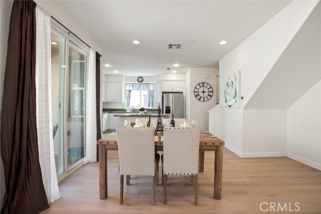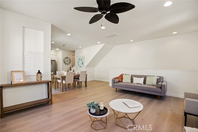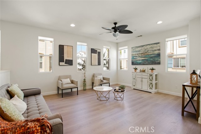 Newly Installed SPC Wood Flooring on the Two Levels. Beautiful 2016 Built - End Unit in the Gated Nexus Community by William Lyon Homes... This beautiful Tri-level End Unit home features 3 bedrooms, 2.5 bathrooms, Plus a den and 2-car attached garage. The entry level has direct access to the 2 car garage and boasts a beautiful den area which is being used as an office area. The second floor is an open concept with a large Living room, Dining room, kitchen with Granite counters, large island, white cabinetry and stainless steel appliances, and a private balcony to relax with your favorite drink. Also a convenient 2nd floor half bath. Located on the 3rd floor is the master bedroom , bathroom and a walk in closet, 2nd and 3rd bedrooms, a full bathroom and convenient laundry area. Enjoy the community pool, spa, playground and barbecue area. Walk able distance to the 24 Hours Fitness, Shops and Restaurants. Easy access to the 15 freeway and centrally located between the 60 and 91 freeways.