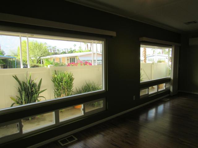 Stunning Mountain View Home in a 55 Community where you Own the LandThis fabulous show stopper offers million dollar views of the snow capped mountains from the expansive front windows. Enjoy comfort and style throughout, featuring dual pane windows, beautiful granite kitchen countertops, and elegant tile flooring.The home boasts a 2019 split system A/C and heating, laminate flooring in the living room and den, and a private wrap-around patio complete with a tranquil waterfall feature perfect for relaxing or entertaining. Upgraded recessed kitchen lighting, and French doors opening to the patio enhance the home's modern charm.Additional highlights includeRecoated roof for peace of mindUpgraded outdoor storage cabinetsCloset organizer in one bedroomCrown molding around doorsAll appliances includedLocated in a pristine 55 community, you'll enjoy low HOA fees of only $330/month and access to two pools, tennis courts, a clubhouse, and a fabulous gym. There's even RV parking available for a small monthly fee.Conveniently close to Tahquitz Golf Course, Trader Joe's, downtown Palm Springs, and the area's exciting casinos, this home truly has it all.Come experience modern living with breathtaking views this one won't last