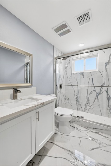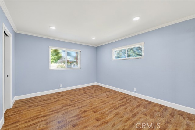 Welcome to this stunning home in the quaint city of Orange. This corner lot home seamlessly blend modern comfort with touches of timeless charm. This gorgeous home is framed by a large frosted glass wood panels door that warmly invites you in to this open concept floor plan featuring 5 Bedrooms, 3 Bathrooms, 2 master suites, a cozy brick fireplace, and a double French doors leading to an enclosed patio perfect for enjoying back yard entertainment. The home has engineered laminate wood flooring throughout with large marbled-like tiles in the bathrooms, and rustic travertine tiles in the enclosed patio. This classic home is fully upgraded including dual-pane windows, crowned moldings, recessed lighting, ceiling fans, dual water heater, and central air. The kitchen is completely remodeled with quartz countertop and backsplash, large single bowl stainless steel sink, brand new cabinets, and appliances. The front yard has lush lawn and flower bed with new sprinkler system and a newly renovated driveway leading into a 2-car garage with automatic door opener. The home is minutes away from the prestigious Chapman University, Old Town Orange, nearby Honda Center and Angel's Stadium, and located in the desirable Orange Unified School District. It's location allow for easy access to the 55, 57, 22, and the 5 freeways making transportation to work and entertainment a breeze.