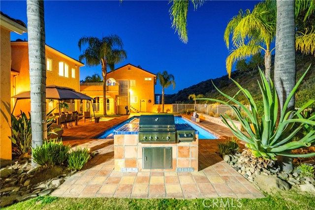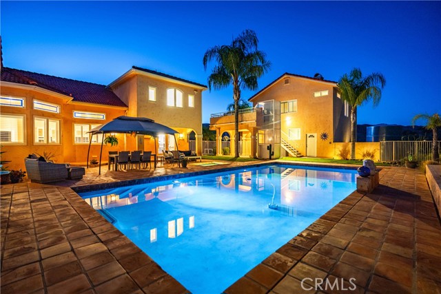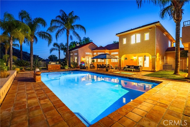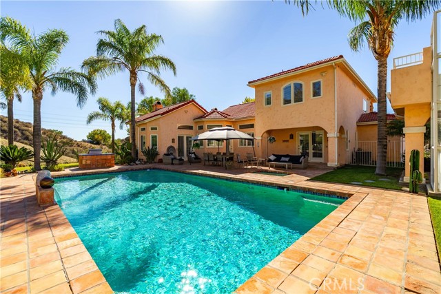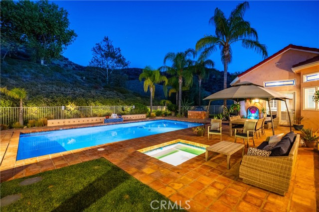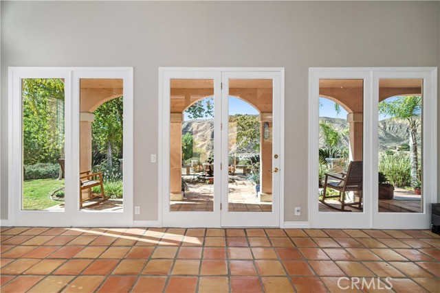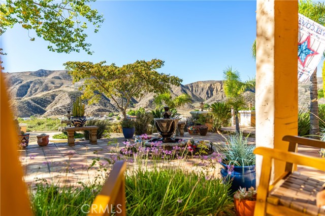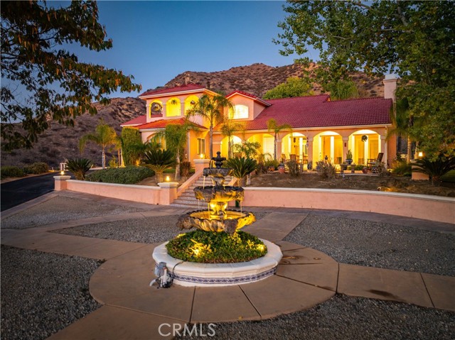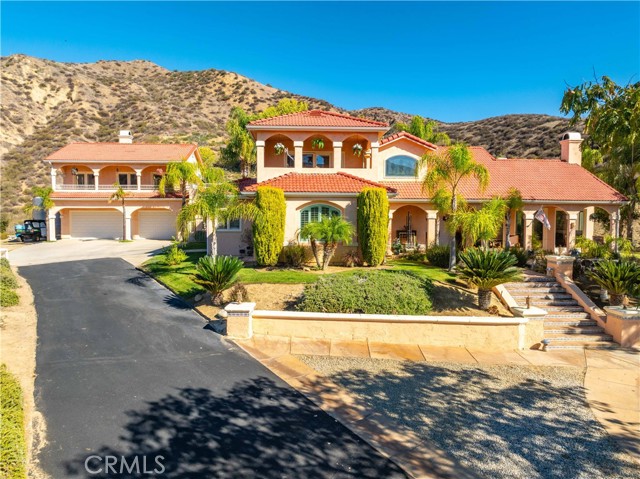 Discover unmatched tranquility and sweeping mountain vistas from this custom Mediterranean estate, perfectly set on six plush acres in historic San Francisquito Canyon. Built in 1994, this 3,151 sq. ft. villa offers 3 bedrooms, 2.5 baths, and a versatile bonus room. A grand double-door entry welcomes you past lighted fountains into a foyer with vaulted ceilings and authentic Saltillo tile floors throughout the main level. The living and dining rooms center around a Spanish-tiled wood burning fireplace, framed by windows and French doors that open to the front patio and breathtaking views. The chef's kitchen features cobalt blue Italian tile, a butcher block island, and a walk-in pantry, while the adjoining family room offers a wood stove and views of the pool. The main level also includes two bedrooms, 1.5 baths, a bonus room, and a laundry area. Upstairs, the primary suite is a private retreat with vaulted ceilings, panoramic views, a private deck, and a spa-inspired bath with Jacuzzi tub, large shower, and dual vanities. Step outside to an entertainer's paradise featuring a 20' x 40' heated pool and spa, built-in BBQ, and expansive patios perfect for relaxing or entertaining. The lower acreage offers open meadows ideal for horses, barns, storage, or stables. Above the oversized 3-car garage -with 9'+ ceilings, 220V power, sink, and automatic openers - is a fully permitted 650+ sq. ft. guest house featuring vaulted ceilings, a kitchen, wood stove, large bedroom, 3/4 bath, and private deck with panoramic views. An elevator provides wheelchair access, perfect for guests or extended family. Enjoy ultimate privacy where deer graze at dusk and peace surrounds you. A true blend of Mediterranean charm and Santa Clarita serenity - this one-of-a-kind estate must be seen to be believed.
