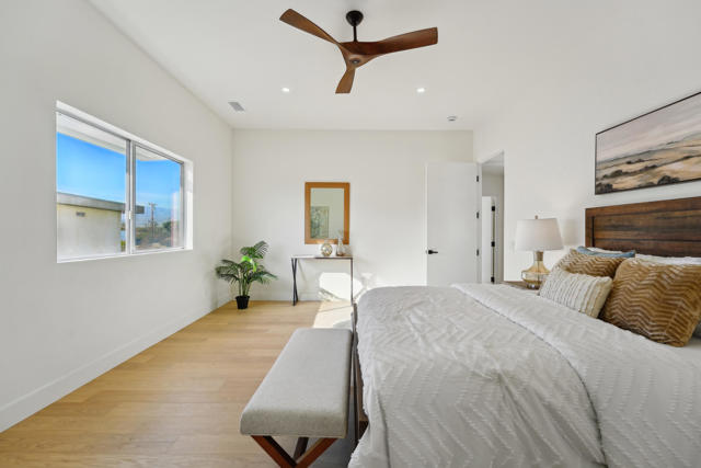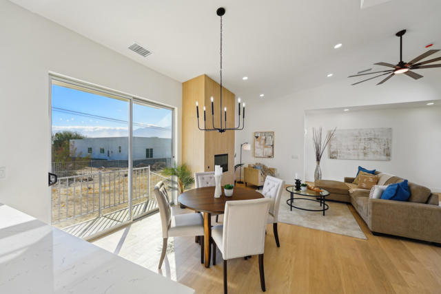 Beautifully updated desert retreat in the historic B-Bar-H Ranch neighborhood of Desert Hot Springs. Experience modern desert living in this thoughtfully remodeled home featuring an open-concept design filled with natural light from expansive windows and sliders. The kitchen offers stainless steel appliances, quartz countertops, and generous counter space perfect for cooking and entertaining. Throughout the home you'll find new flooring, refreshed bathrooms, updated fixtures, and ceiling fans for year-round comfort. The large south-facing yard provides endless opportunities for outdoor living. Add a pool, create a fire pit area, or simply relax and take in the mountain views. Located just minutes from Palm Springs, this property combines privacy and convenience with no HOA fees and no lease land. Ideal as a full-time residence, weekend getaway, or short-term rental investment. Come see this stunning desert home and discover the charm of B-Bar-H Ranch living.