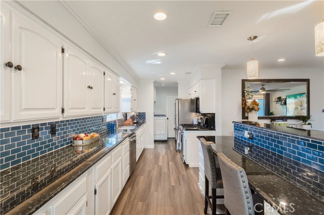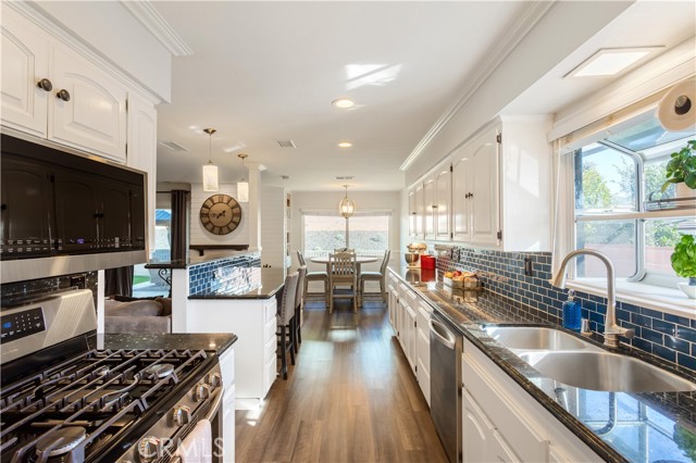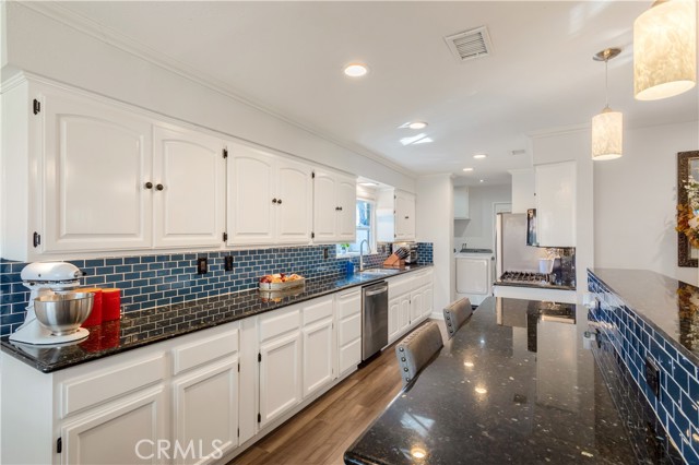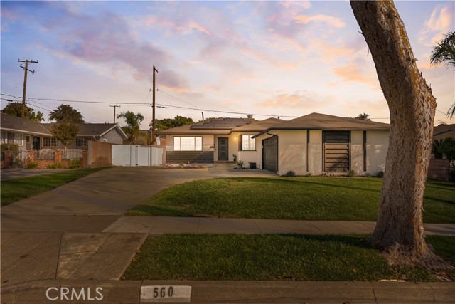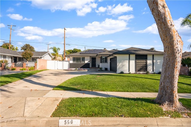 Turnkey Elegance Meets Smart Energy Living with PAID OFF SOLAR and POWERWALL in La Habra. Welcome to your beautifully remodeled La Habra retreat—where modern design, comfort, safety and cutting-edge sustainability come together. This stunning, move-in-ready home has been thoughtfully upgraded inside and out, offering a perfect balance of style, functionality, and energy efficiency. Equipped with a state-of-the-art Solar System featuring 30 panels (12.3 kWh), this home produces approximately 17,500 kWh annually. A Powerwall Battery (13.5 kWh) provides whole-home backup and Wall Charger (48 amps) with additional 220V plug make this garage EV-ready for future expansion. Step into the bright, updated kitchen featuring crown molding, granite counters, tiled backsplash, recessed lighting and a large breakfast bar with a separate dining area with natural light flowing throughout. Stainless steel appliances adorn the kitchen including a five burner gas stove and a new LG microwave with air fry, steam cook, and conventional oven functions, alongside a new LG dishwasher. The home features beautiful laminate flooring throughout with dual paned windows, ceiling fans in the living room and bedrooms with a quaint garden window in the kitchen for capturing the morning sunrises. Enjoy a serene backyard retreat with brand-new sod, upgraded irrigation and drip systems, and low-maintenance blue glow agave and succulents. The backyard is an entertainers delight with ample space and a metal pergola with lighting and curtains, perfect to unwind beneath charming string lights and beautiful sunsets. New vinyl privacy fencing and side gates create a private oasis. The front yard also boasts new sprinkler valves and drip systems, making the entire property lush and efficient. This home was also recently painted both inside and out and has a newer roof and HVAC system along with a new Noritz tankless water heater and new electrical breaker panel. In addition to all the comfort, style and functional upgrades, this home provides around the clock safety with security cameras with facial recognition, motion detection & cloud recording. Located in a quiet and prime location, this home is conveniently located near the highly rated Sonora High School, shopping & the Brea Mall, providing quick access to daily essentials & entertainment. Pride of ownership is evident in every detail of this home which has been updated with the finest finishes & mechanical systems.