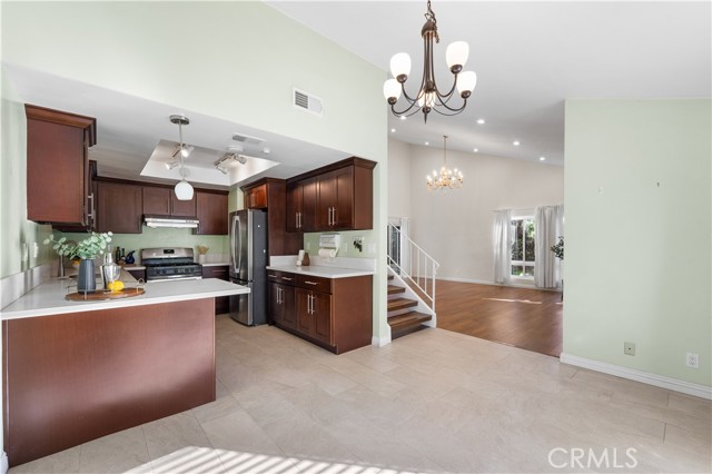 Welcome to this lovely updated 3-bedroom, 2.5-bathroom condo located in the highly sought-after Arcadia community. This front unit boasts curb appeal and a meticulously manicured lawn. Situated within a well-maintained 3-unit building, this 1,657 sq ft home provides the feeling of a single-family dwelling, characterized by thoughtfully designed spaces and sophisticated finishes. The updated kitchen showcases shaker-style cabinetry, quartz countertops, and contemporary fixtures, seamlessly connecting to a bright, open dining and living area with expansive windows. The living area is flooded with natural light, enhanced by high, vaulted ceilings. The main level includes a spacious master suite with an en-suite bathroom, a half bath, and a separate laundry room. Upstairs, a second suite and a third bedroom are situated, all benefiting from ample natural light. Notable features include updated bathrooms, beautiful laminate wood flooring throughout, recessed lighting, a side deck/patio, a backyard with privacy fencing, a two-car garage, and ample storage spaces. The HOA covers water, trash service, insurance, and common area maintenance. Located within the esteemed Arcadia Unified School District and in close proximity to Santa Anita Mall, golf course, H-Mart, 99 Ranch Market, and various shopping & dining establishments, this property presents a distinctive opportunity for an enhanced lifestyle.