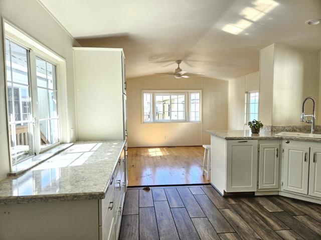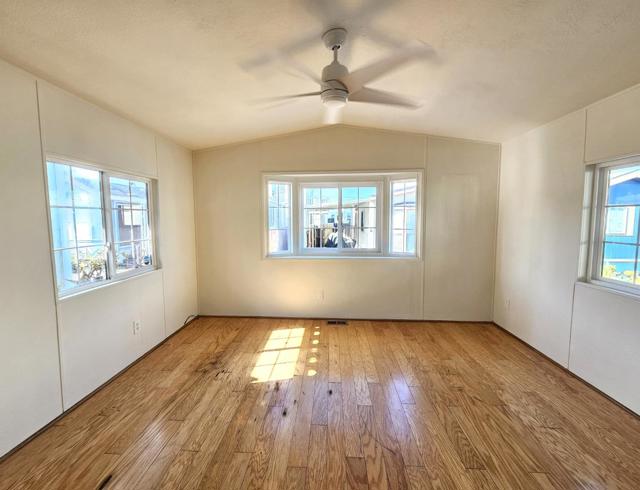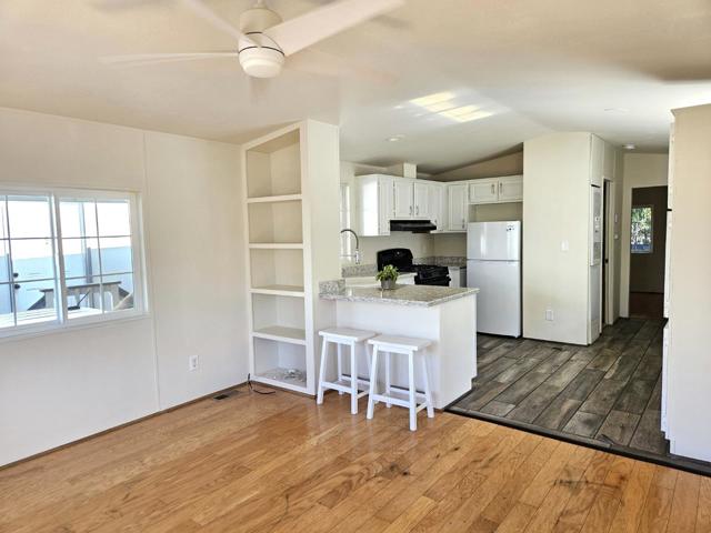 Enjoy seaside living in one of Santa Cruz's most iconic locations! Charming 1-bed home located steps from the Santa Cruz Beach Boardwalk, the Wharf and world surfing at Cowell's Beach! Situated in an all-ages, pet friendly, leased-land community, this open & bright home features recent upgrades including interior paint, a new gas range & refrigerator, newer roof, Trex decking and an all-in-one electric washer/dryer unit. Additional highlights include a stylish updated stone & tile bathroom, bay window, ceiling fans, on-demand water heater, and a freshly sealed carport. Space rent for new owner will be $2,115/month. Amazing value in the sweetest and only Manufactured Home Park on West Cliff Drive!!