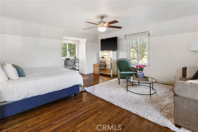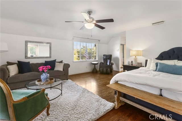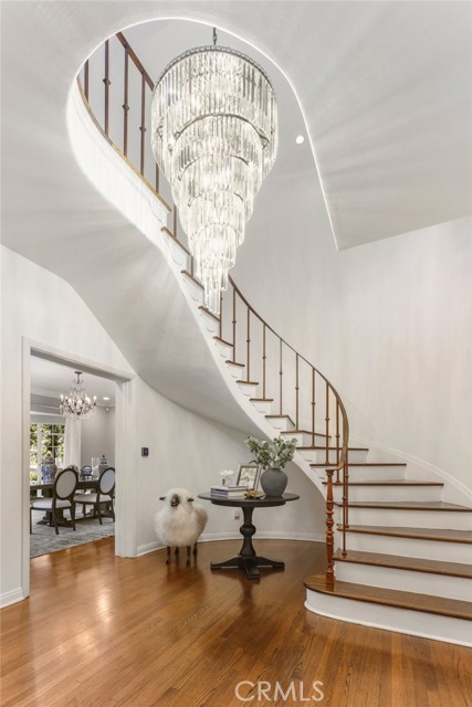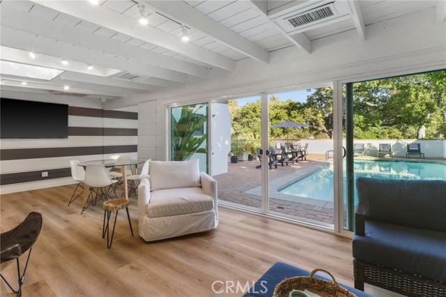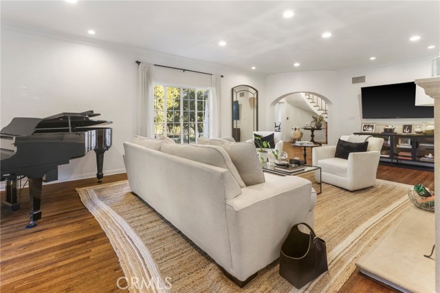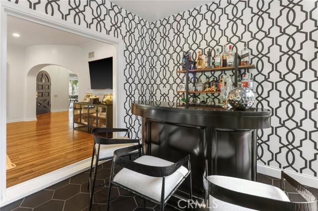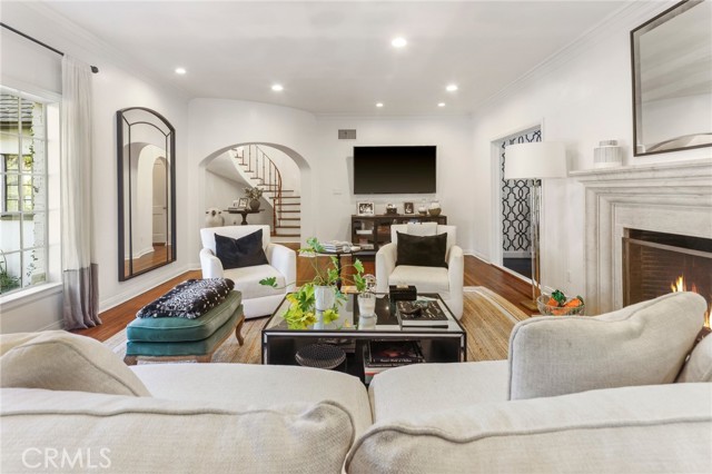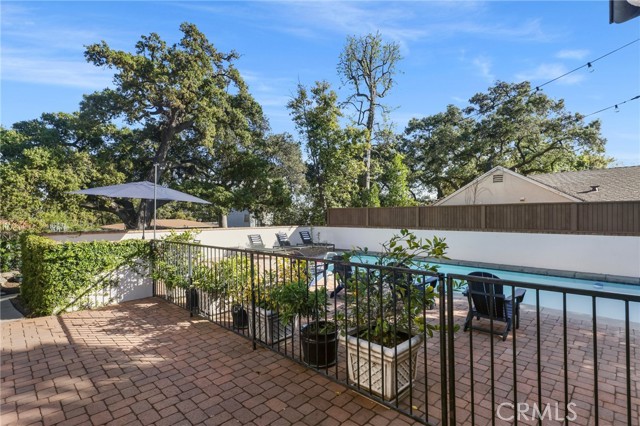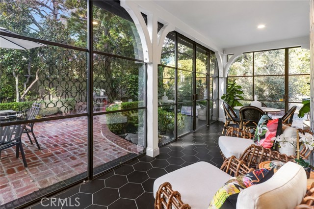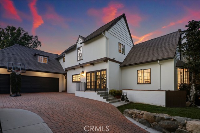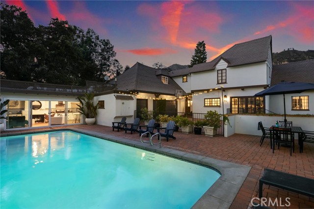 Gracefully situated with commanding street presence and breathtaking mountain views, this elegant Normandy French Tudor invites you in through a custom front door to an impressive oval-shaped foyer. Gleaming hardwood floors, a dramatic iron-railed staircase, and graceful archways lead seamlessly to the formal living and dining rooms, as well as a warm and inviting den. The spacious dining room, framed with crown molding and a curved bay window, welcomes lovely sunlight and picturesque views of the shaded, tree-lined front yard. The formal living room is truly stunning, with a beautiful fireplace serving as its centerpiece. An attached solarium, wrapped in walls of glass, bathes the room in natural light while offering serene garden views and access to an expansive brick patio—perfect for year-round entertaining. The cozy den includes a convenient powder room, while the chef’s kitchen features a butler’s pantry and adjoins a generous breakfast room with a built-in buffet and views of the pool. A downstairs bedroom, located off the butler’s pantry, provides a full bath—ideal for guests or extended family. Upstairs, the spacious primary suite captures sweeping mountain views, accompanied by a private bathroom with steam shower, 2 additional large bedrooms with a Jack-and-Jill bath, abundant closets, and excellent storage. A versatile gym or office with an en-suite ¾ bath completes the upper level. Outdoors, the large rectangular pool feels private and inviting, complemented by a charming pool house (an additional 500 Square Feet not included in total) with its own kitchen and fireplace. A gated brick motor court and a 3-car garage complete this remarkable estate, offering timeless elegance and modern comfort. Updates include a new roof, HVAC, refinished hardwood floors, interior paint, & insulation in 2025. Pool plaster & tile replaced in 2024.