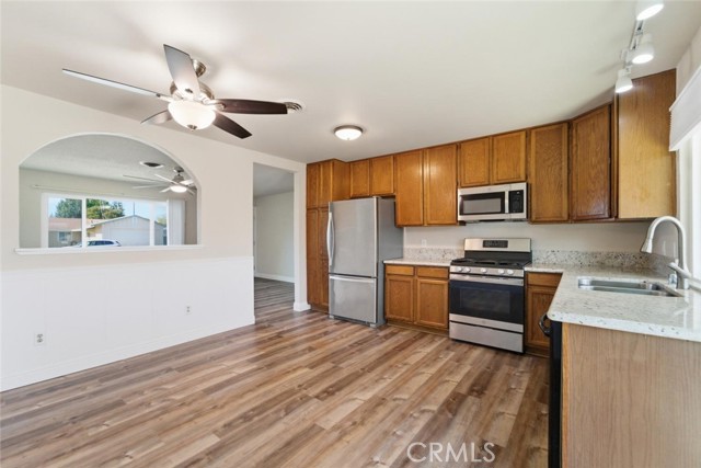 Adorable Home, Sweet Neighborhood Move-In Ready! Come and see this charming 3-bedroom, 2-bath home with a 2-car garage that's been beautifully updated inside and out! Fresh paint gives the home a bright, welcoming feel while the kitchen features gorgeous granite countertops and updated vanities in both bathrooms. You'll love the newer luxury vinyl plank flooring throughout stylish, durable, and easy to maintain. Major updates have already been completed within the last two years, including a new roof, windows, floors, and exterior doors plus a new Tuff Shed for extra storage! Every room offers a new ceiling fan for added comfort. Step outside to a spacious backyard with endless potential perfect for entertaining, gardening, or even adding a pool. Enjoy the large covered patio for weekend barbecues or relaxing outdoors, and admire the low-maintenance front yard designed for curb appeal and ease. This adorable home truly checks all the boxes with modern upgrades, outdoor space, and a comfortable layout in a sweet, well-kept neighborhood. Ready to move right in and make it yours!