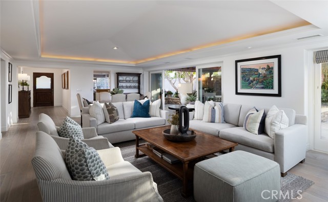 Discover refined coastal elegance at 1905 Yacht Maria, a beautifully reimagined single-level home in one of Newport Beach’s most coveted guard-gated communities, Seaview. Situated on a spacious 8400 square foot beautifully landscaped lot, this residence combines timeless design, thoughtful upgrades, and effortless indoor-outdoor flow. An exquisitely designed front entry created by Rogers Gardens and charming Dutch door set a welcoming tone from the moment you arrive. Inside, warm oak flooring and abundant natural light accentuate the home’s open-concept layout. The inviting living area, centered around a cozy fireplace, connects seamlessly to the dining space and chef’s kitchen, complete with a Sub-Zero refrigerator, stainless steel appliances, and ample cabinetry. The primary suite serves as a tranquil retreat with dual walk-in closets and a spa-like bathroom featuring a jacuzzi soaking tub and steam shower. Two additional bedrooms offer flexible living options for guests, family, or a home office. Expansive sliding doors lead to a covered outdoor living space, perfect for year-round entertaining. Enjoy gatherings surrounded by lush gardens, a built-in BBQ, mini fridge, and the calming sounds of a water fountain. Additional features include an inside laundry room, epoxy-finished garage, new water heater, and new vinyl fencing enhancing both style and privacy. Residents of Seaview enjoy resort-style amenities, including a pool, spa, and tennis courts, all just moments from Newport’s beaches, harbor, Fashion Island, and award-winning schools. 905 Yacht Maria captures the essence of single-level coastal living.