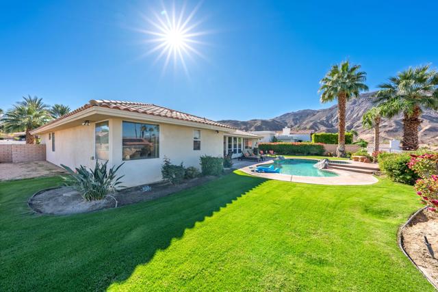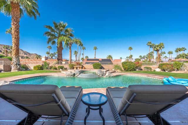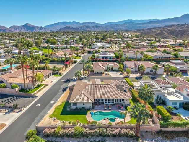 Views! Vista Paseo is one of the most sought-after gated communities in South Palm Desert; close to El Paseo shopping and dining along with recreation and hiking trails like the famed Palm Desert Cross. This home sits on one of the premium elevated corner lots in the neighborhood with spectacular mountain views from the back yard pool and entertainment area. Although most of Vista Paseo consists of nicely done tract homes, this is a 1995 custom home built by well-respected local builder and developer Lance Alcano. The four bedroom, 2,923 foot residence has a three car garage on a 12,000+ sq. ft. lot. It is upgraded throughout with vaulted ceilings, 16 inch Italian tile flooring in the entry, halls, kitchen and baths. The great room features a flagstone fireplace. The kitchen has stainless steel appliances, granite counter tops and more. French doors lead to the spectacular back yard with elevated spa, lovely landscaping and breathtaking views. With low HOA dues of only $140 per month and a great South Palm Desert location, what more could you want? The furnishings in the beautiful home are available for purchase outside of escrow.