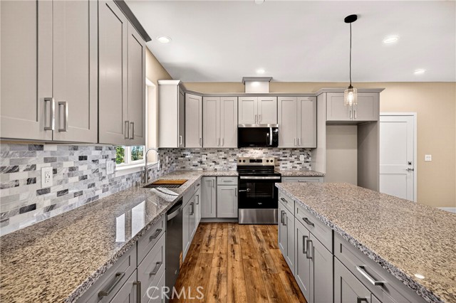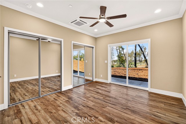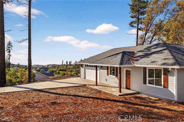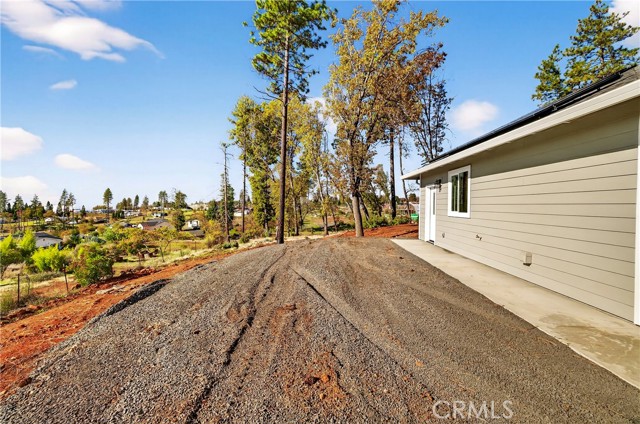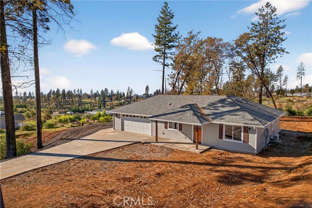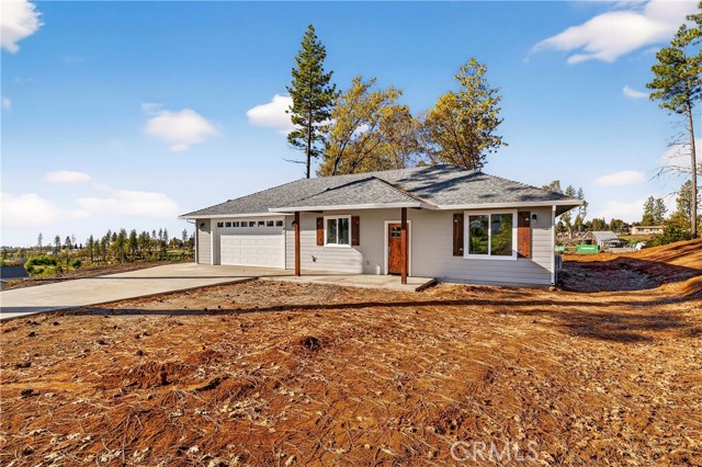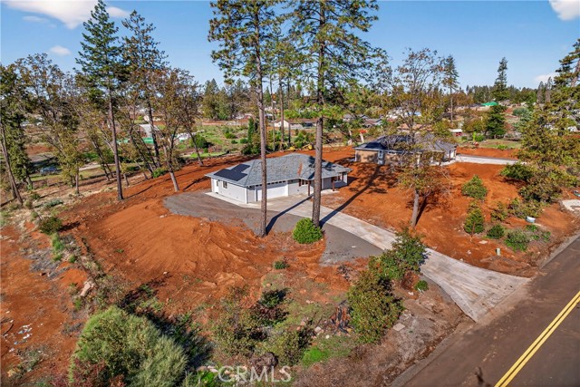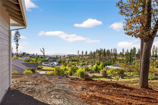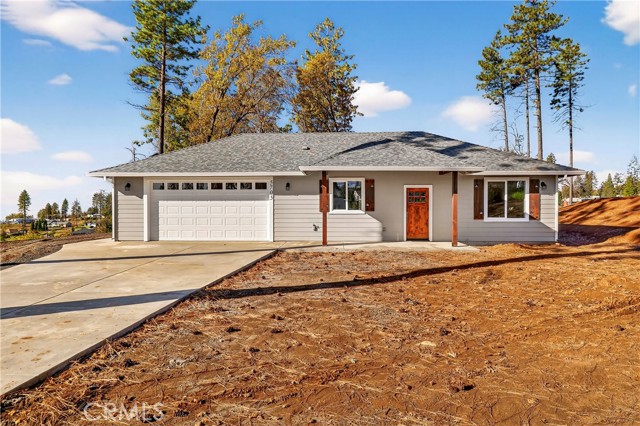 Fantastic Central Paradise location for this 2025 Custom Home, built by Frost Construction a long time Paradise builder. Great VIEWS of the Sutter Buttes, Coastal Mountain Range and the valley. The home offers Owned Solar 3.08 KW system, 7 panels with microinverters. An expansive .70 acre lot, plenty of room for a shop or outbuilding. R.V. parking with electricity. Landscaped front yard on drip system. Boasting a generous 1,021 square feet of living space, this home features top-notch craftsmanship and modern amenities. Upon entering, you'll be greeted by a charming 96 square foot covered front porch with a craftsman-style front door and custom shutters. Step inside to discover an open floor plan that seamlessly connects the living room, kitchen, and dining area. The kitchen is a chef's dream with granite countertops, stainless steel appliances, recessed LED and pendant lighting, and a stylish island for added convenience. The primary bedroom is a serene retreat with crown molding, a slider leading to the covered patio, and a well-appointed en-suite bathroom featuring granite counters and a step-in shower. The guest bedroom also offers crown molding and access to a sleek guest bathroom with granite countertops and a tub/shower combination. The home features gorgeous Vinyl Plank flooring throughout. Outside, you'll find a spacious 114 square foot covered patio with recessed lighting and a ceiling fan, perfect for outdoor entertaining. Additionally, the oversized two-car garage, measuring 23'5" wide by 25'10" deep, includes a laundry area. Plenty of space for a boat, trailer, or RV parking. R.V. electric hook-ups. Don't miss out on the opportunity to call this beautiful home yours!