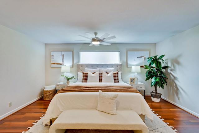 Remarkably stunning residence nestled in a highly sought-after, serene cul-de-sac neighborhood offers academically distinguished Cupertino schools! Ideal floor plan : spacious primary suite and bedroom on main floor. Gorgeous, contemporary home locates in a highly coveted neighborhood offers a perfect, inviting setting. The elegant living and dining area with soaring vaulted ceilings, skylights, attractive fireplace, large picture windows showcase the atrium with lush greenery for a serene and perfect space for everyday living and entertaining. Gourmet kitchen is equipped with a new stainless steel gas range, granite countertops, backsplash, and an abundance of storage cabinetry. Sliding glass doors open to the private backyard with patio, lined with mature greenery for a peaceful space to relax, study or play. Primary suite boasts a walk-in closet, double vanity and tiled shower enclosure. Well proportioned secondary bedrooms each with ample closet space. Outstanding amenities : brand new 50-year roof with new gutter guard, freshly painted exterior, laundry room with utility sink, hardwood floor, epoxy garage floor, spacious loft area, community greenbelt and pool. Convenient location close to Stevens Creek Trail, Blackberry Farm, parks, shops, dining and major commute routes.
