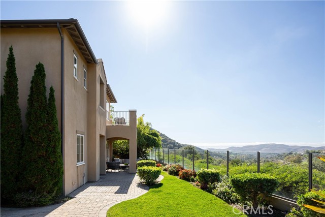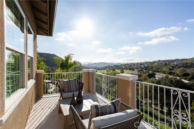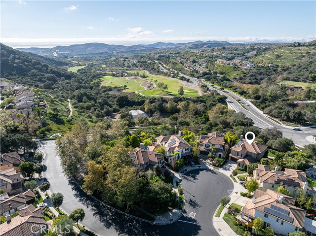 Behind the private gates of Vittoria in Talega, this stunning residence takes full advantage of its enviable cul-de-sac location, offering privacy, panoramic golf course and hillside views, and a lush wraparound lawn that feels like your own private resort. A brick-lined path leads through manicured landscaping to the welcoming front courtyard set on a rare approx. 8,317 square foot lot. Inside, timeless architecture and coastal sophistication unfold across approx. 3,209 square feet of beautifully appointed living space. The thoughtful floor plan features four bedrooms (including a convenient main-level suite), three baths, and a seamless flow between formal and casual spaces. The grand entry opens to a dramatic two-story living room and dedicated dining room bathed in natural light. An adjoining office or library with sliding privacy doors adds flexible functionality. The chef’s kitchen overlooks the verdant backyard with a large granite-topped island, premium stainless-steel appliances, and a sunny breakfast nook that seamlessly connects to the expansive family room, complete with custom built-ins and cozy fireplace. Upstairs, a spacious bonus room anchors the secondary bedrooms and the serene primary retreat. The primary suite features its own private view balcony and a spa-inspired bath offering walk-in shower, dual vanities, and generous walk-in closet. Outdoors, the generous yard is perfect for entertaining or soaking up the breathtaking views. An elevated BBQ island, multiple lounge and dining areas, and those endless views offer peaceful mornings or evenings filled with friends and family. Talega offers its own swim and athletic facility consisting of multiple pools, water park, pickle ball courts, basketball courts , sand volleyball court and much more. A rare combination of privacy, thoughtfully designed space, and gorgeous views, 16 Via Elda is a gem of a home meant to be experienced, not just seen.