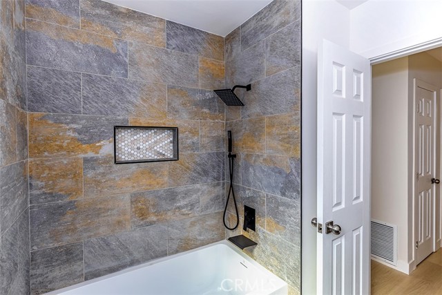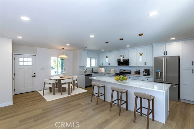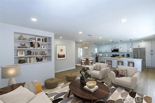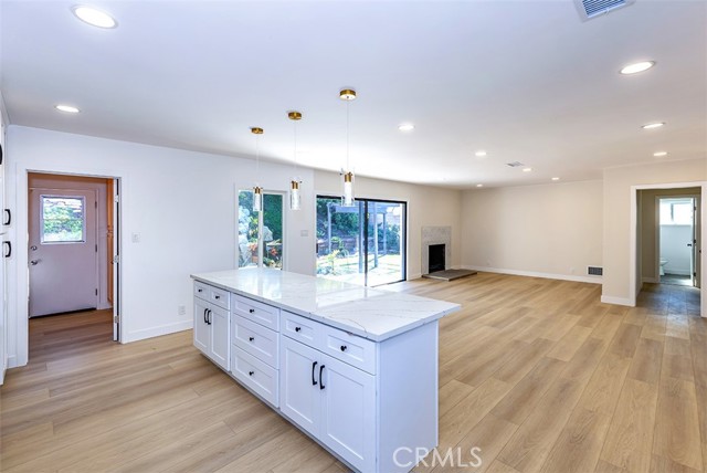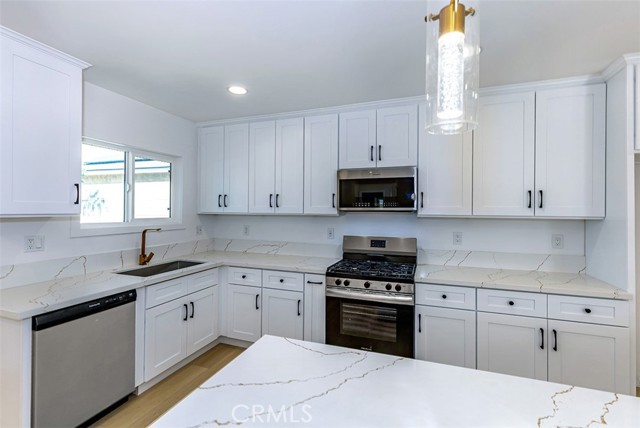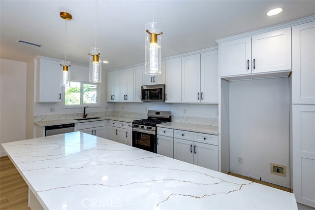 Beautifully remodeled La Mirada park home! This stunning residence welcomes you with a completely open floor plan that blends style and functionality. The spacious kitchen is the centerpiece of the home, featuring brand-new shaker cabinets, elegant quartz countertops, stainless steel appliances, and a large island that opens to the living room and offers a perfect view of the tranquil backyard waterfall. Adjacent to the kitchen is a generous laundry room with additional storage and a convenient laundry sink. The inviting living room showcases a beautifully tiled fireplace, recessed lighting, and a seamless layout that flows effortlessly throughout the home. New luxury vinyl plank flooring runs from room to room, enhancing both beauty and durability. Both bathrooms have been tastefully updated with custom tile, modern vanities, and stylish fixtures. Dual-pane windows and a new central heating and air system provide comfort and energy efficiency all year long. Step outside to your own private oasis where a stunning custom rock waterfall creates a peaceful ambiance. The backyard also features a spacious open patio, a brand-new gazebo, and freshly installed turf, making it the ideal space for entertaining or simply relaxing. This La Mirada gem combines modern upgrades, comfort, and a resort-like outdoor retreat. Located near the award winning La Mirada Golf Course and within easy walking distance to La Mirada Reginal Park featuring Splash Water Park, Fishing Lake & Frisbie Golf, Aquatic Center, Community Gym, Library, Athletic Fields & Biola University. You will enjoy both recreational amenities and peace of mind. ** Some pictures have been virtually staged **