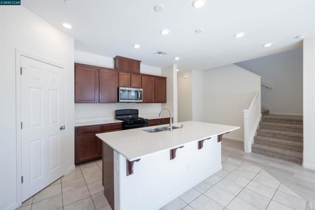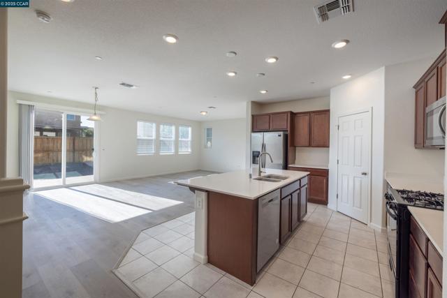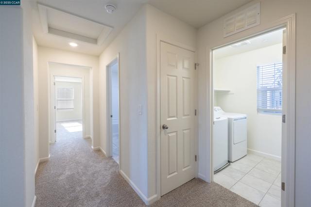 Beautifully updated newer home on one of the largest lots in the community. Bright and welcoming, this remodeled home offers one of the largest lots in the development. Fresh interior paint, new carpet, and gleaming hardwood floors create a move-in-ready appeal. The spacious backyard has been newly cleared, covered with a protective weed barrier, and finished with fresh mulch—an ideal blank canvas for your landscaping or gardening vision. Enjoy an open-concept floor plan featuring an inviting entry, a generous living and dining area, and a light-filled kitchen perfect for entertaining. The ground floor includes a convenient half bath and an attached two-car garage. Upstairs, two bedrooms share a large full bath, while the loft and primary suite—with dual walk-in closets—offer excellent separation and privacy. Located near beautiful Valley Oak Park, top-rated schools, and a variety of shopping and dining options, with easy freeway access.