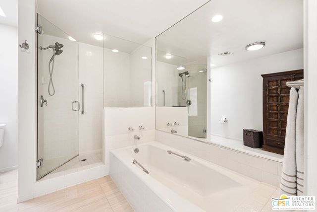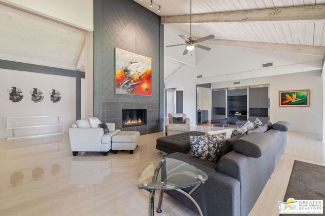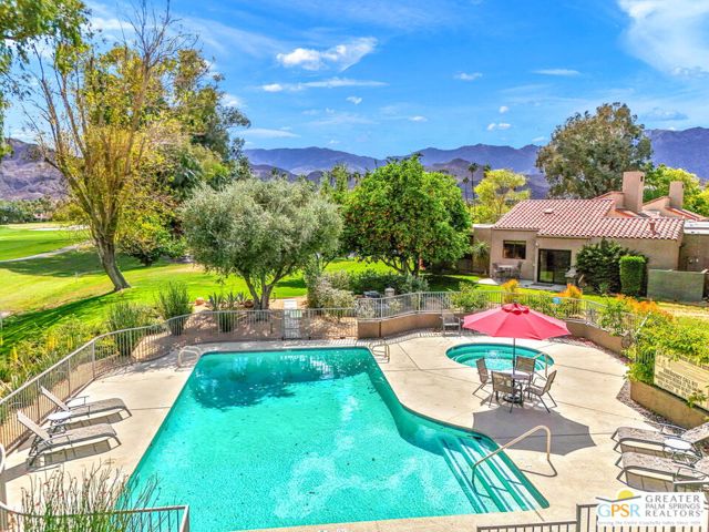 Discover a rare gem! This ultra-unique, single-level 4 bedroom, 3.5 bathroom single level condo sits directly on the 4th fairway of the prestigious Dinah Shore Tournament Course at Mission Hills Country Club. Designed for those who crave space, serenity, and stunning views, this property offers panoramic vistas of the greenbelt, shimmering lake, manicured fairway, and the majestic Santa Rosa Mountains. The south-facing patio is a showstopper seamlessly blending indoor and outdoor living for that perfect desert lifestyle. Just steps from one of the many community pools and spas, this residence combines resort-style amenities with the privacy of a single-family home. From the gated front courtyard and formal entry, step into a dramatic south-facing living room featuring vaulted wood-beam ceilings, a gas fireplace, entertainer's bar, and tile floors throughout. Two sets of sliding glass doors frame postcard-worthy views and open to the expansive covered patio. And yes, according to the HOA, this patio can be extended! The formal dining room also enjoys striking views and flows effortlessly into the oversized kitchen complete with soaring ceilings, a large center island, casual dining area, and access to a charming east-facing patio that overlooks a sparkling community pool. The south-facing Primary Suite is a private retreat with stunning views and patio access. The spa-like ensuite bath features dual vanities, a walk-in shower, separate soaking tub, and abundant closet space. Junior Ensuite Two offers great views, patio access, and a shared bath (with dual sinks and walk-in shower) connecting to Junior Ensuite Three. Junior Ensuite Four, tucked away on the opposite end of the home, includes private courtyard access, mountain views, and its own full ensuite bath perfect for guests or a home office setup. Rounding out the features: a stylish powder room for guests and a nearby two-car garage with an oversized storage room.