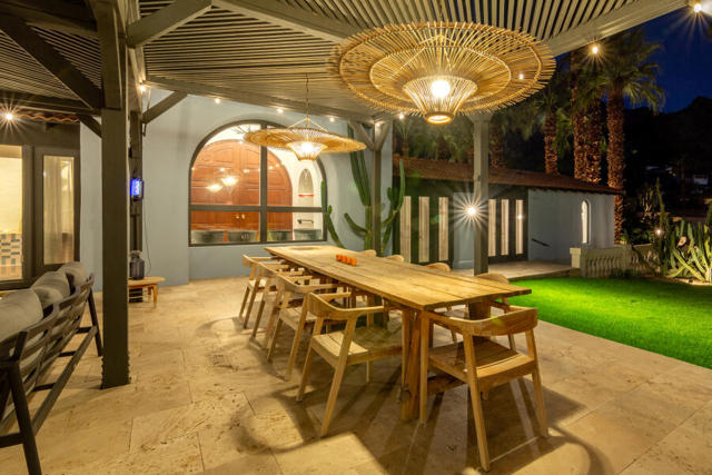 Perched on a private 1.51-acre parcel in The Mesa, the legendary Bono Estate stands as one of Palm Springs' most iconic and storied residences. Once home to Sonny and Mary Bono, the property reflects the vibrant spirit of a transformative era in music, politics, and design where Hollywood glamour meets the desert. Encompassing 8,989 square feet of refined architectural living space, the estate captures the essence of grand Palm Springs entertaining. Clean lines and walls of glass frame breathtaking mountain vistas and bathe the interiors in natural light. The main living areas flow effortlessly into one another, from the expansive great room to a formal dining area with a signature rock fireplace and a chef's kitchen with a Sub Zero Fridge, 8 burner wolf cooktop, two wine fridges, and 4 Thermador ovens that is designed for both intimate gatherings and large-scale hosting.The residence offers 7 bedrooms and 6.5 bathrooms, including a luxurious primary suite and several private guest accommodations each designed to balance elegance with comfort. Throughout, architectural details honor the era's design while blending seamlessly with thoughtful enhancements.Outdoors, the property unfolds like a private resort with a new pergola and extended patio featuring curated landscaping that have transformed the grounds into a showcase with lush lawns, multiple olive trees along with date palms, and cacti that surround the home, creating both privacy and beauty. Multiple terraces invite relaxation and privacy, overlooking the new travertine pool deck, pool, and refurbished tennis court that anchors the estate's recreational offerings, making it ideal for gatherings and events beneath the desert sky. Featuring 2 Street entrances, an oversized motor court for 12+ cars, and fully private grounds. A rare fusion of celebrity heritage, architectural distinction, and timeless sophistication, the Bono Estate represents a chapter in the story of Palm Springs.Main Entrance is on 301 W El Camino
