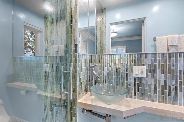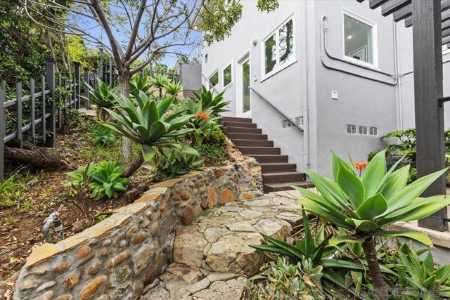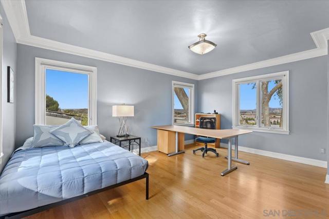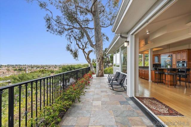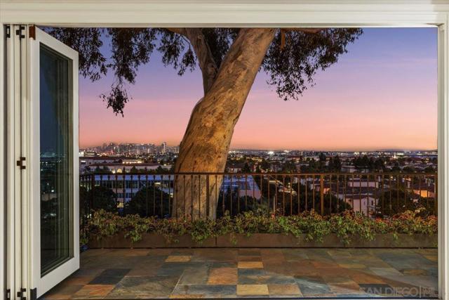Secluded at the end of a rarely traveled dead-end street, this 3-story, 6BD/6BA with 2 optional large rooms in Loma Portal offers approximately 5,200 SF of flexible living space on a 10,000 SF lot with sweeping unobstructed views of downtown San Diego and the bay. The main level features a large chef’s kitchen, formal dining room, and a spacious living room with fireplace—all with panoramic city views. Accordion doors open to a generous deck off the kitchen and dining room, seamlessly blending indoor and outdoor living. The lower level includes a full second living room, ideal for multigenerational living, guests, or a private retreat. Outdoor highlights include a built-in BBQ, fire pit, koi pond, and tranquil waterfall in the front yard. Patios off the first and third floors offer additional outdoor escapes, while the lush, oversized backyard offers endless opportunities to bring your own vision to life. With soaring ceilings throughout, 3 storage rooms, a 3-car garage, and 6 additional off-street parking spaces, this home delivers rare space, privacy, and flexibility. Properties like this—offering scale, views, and such a peaceful setting in the heart of Point Loma—are few and far between. A spectacular and rare offering!