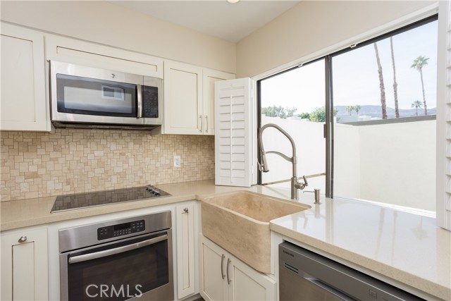 Located in South Palm Desert, Close to shopping, Dining and minutes from El Paseo. Great for a weekend getaway or full time Living. Beautiful Mountain Views from this lovely 2-bedroom townhome. Freshly Painted, with Laminate flooring downstairs, carpet on stairs and bedrooms upstairs. Laundry conveniently located upstairs. Kitchen is upgraded with custom cabinetry, Quartz Counter Tops and Stainless-Steel Appliances. Newer Central AC unit installed within the last year. Custom Cabinets and Granite Countertops in bathrooms. 2 separate patios for entertaining, Amenities include pools and tennis courts, perfect for those lovely sunny days. 2 parking spots located close to the unit.