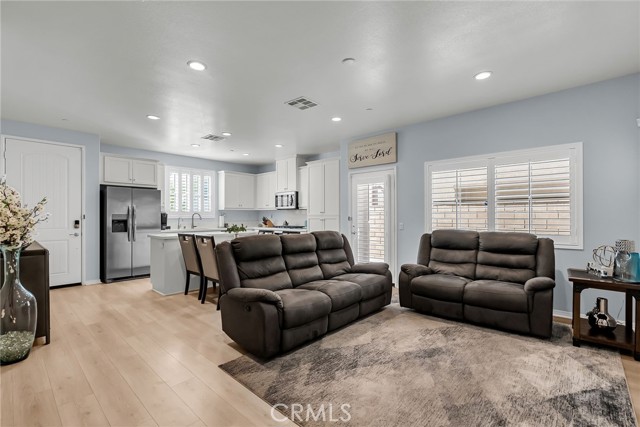 YOUR NEW HOME - SINGLE-FAMILY HOUSE - Welcome to Encore at Providence, a collection of single-family homes in a beautiful, gated community in Fontana. Upon Entering the bright and airy, open concept Great Room, and In-Kitchen Dining space will usher you in. The gourmet Kitchen, which includes an island and island extension for extra seating, stylish cabinetry, stainless-steel appliances and granite kitchen counter tops will excite the Chef of the household. The Backyard that has a cement patio area offers the perfect space to BBQ and entertain with convenient access for the Great room. The first level also has a good-sized bedroom and full bathroom. The large upstairs Loft is the perfect spot for movie night, space to study, or a great Flex space for your individual needs. Two additional spacious bedrooms, a secondary bath with dual sinks, laundry room along with the large Primary suite are located just off the upstairs loft. The primary bedroom and Bath with walk-in shower, dual sink vanity with stone counter tops and expansive walk-in closet complete this well-appointed home. Other amazing features included in this home are Wood shutters, upgraded flooring, tankless water heater and SOLAR. Park in your 2 car garage or on your driveway and have convenient direct access through the garage. The community offers privacy with controlled Gate access, a park and playground and plenty of visitor parking. Conveniently located near schools, freeway access for commuters along with shopping and dining at Victoria Gardens nearby.