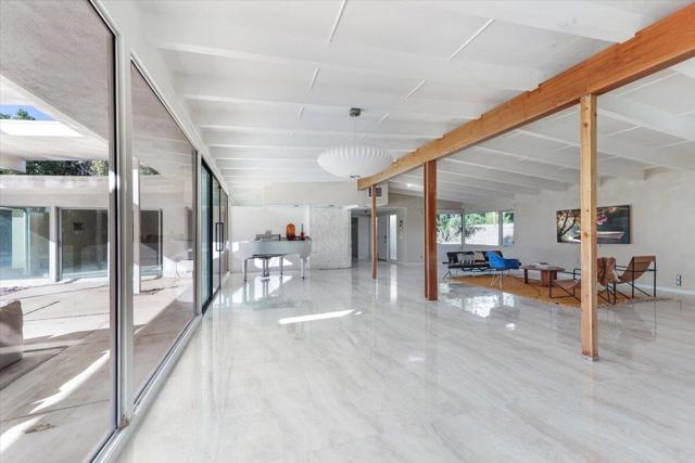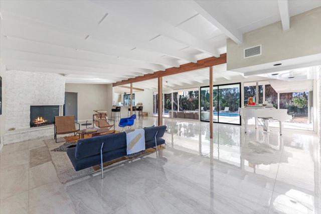 Graced with priceless mountain views from its sought-after setting in Palm Springs' prestigious Little Tuscany enclave, this true Mid-Century Modern classic is ready for its next enduring chapter. The property is ideal for an investor seeking great potential, or an owner searching for a storied residence awaiting their personal imprint. Built in 1954 and fully walled and gated, the impressively crafted home was formerly known as the Tea Dance House, as it hosted fabled gatherings of Hollywood legends in the 1960s, including actor, singer and comedian Dean Martin. If you are avoiding the cameras or merely seeking a chic refuge, the residence presents generous space for relaxing and entertaining on a large homesite with private front yard, gated driveway, and an exclusive backyard with virtually limitless opportunities. Three oversized bedrooms, two- and one-quarter baths and a den are revealed in a single-level design spanning approximately 2,342 square feet. Floor-to-ceiling windows create a wall of glass with backyard views and, combined with vaulted open-beam ceilings, lend an extra-open ambiance to fireplace-warmed living and dining rooms. Opening to the backyard, the family room flows to space for your future kitchen. Dean Martin and his famous friends would appreciate Little Tuscany's proximity to Palm Springs' fashionable Uptown Design District, where fine restaurants and high-end galleries and boutiques join casual cafes and popular resorts. Hollywood is always reinventing itself...here is your opportunity to do the same at this fabulous Mid-Century showplace.