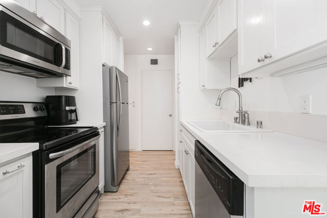 Beautiful remodeled 1 bed, 1 bath condo in the highly sought-after Hancock park/Miracle Mile area featuring updated flooring, sleek stainless steel appliances, and a private balcony. Two covered parking spaces add convenience in the heart of the city. Enjoy the peace of mind of a secure gated garage with cameras and key fob entry, plus the amenities of Sycamore Villas: a heated pool, sauna, rec room, and community laundry. Pet-friendly and centrally located just minutes from the vibrant dining and shopping scene on Melrose and La Brea. This condo offers the best of comfort, style, and convenience. HOA includes water, trash, earthquake ins, landscaping, pool and on-site janitor 5days/week.