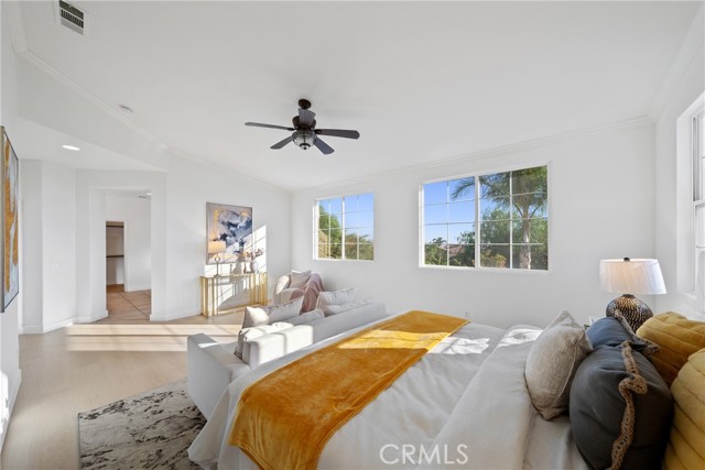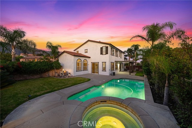 Beautifully upgraded and move-in ready, this stunning 4-bedroom pool home sits on a quiet and safe cul-de-sac, offering breathtaking views of the mountains and city lights. Recently renovated, the property features fresh exterior and interior paint, brand-new luxury vinyl wood-like flooring, and a newly finished epoxy garage floor, giving the entire space a clean, modern feel. Step inside to an open and airy two-story floor plan with soaring ceilings over the formal entry and living room, filled with natural light and plantation shutters and crown moldings. The formal dining area connects to a spacious family room with a raised-hearth fireplace, built-in media center, and large windows overlooking the sparkling pool and patio. The kitchen is a chef’s dream, showcasing granite countertops, stainless steel appliances including double ovens, a center island, reach-in pantry, and a sunny breakfast area. Upstairs, the expansive primary suite features panoramic city-light views, a luxurious bathroom with soaking tub, separate shower, dual sinks, and a walk-in closet. All bedrooms offer crown molding, and north-facing windows framing the mountain views. The backyard is an entertainer’s paradise with a covered patio, pool, spa, outdoor shower, manicured lawns, and a gated side yard perfect for potential RV parking. Located within the highly rated Etiwanda School District — John L. Golden Elementary, Day Creek Intermediate, and Los Osos High School — all three schools are within walking distance, allowing children to attend from elementary through high school without ever changing neighborhoods. With no HOA and low property taxes, this home combines elegance, comfort, and outstanding value in one of Rancho Cucamonga’s most desirable communities. Close to Victoria Garden, Ontario international airport and 210,15 freeway.