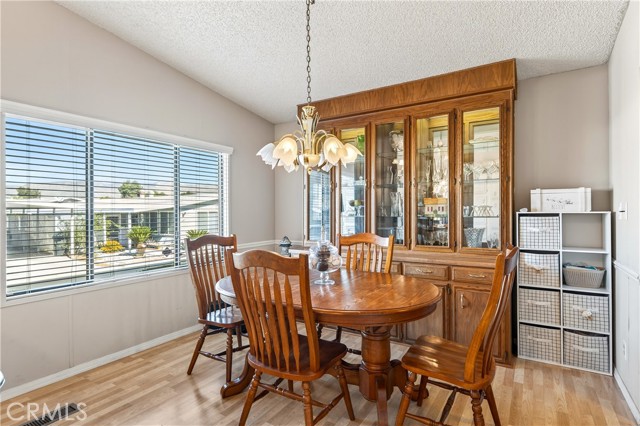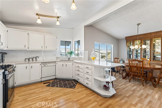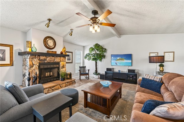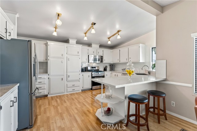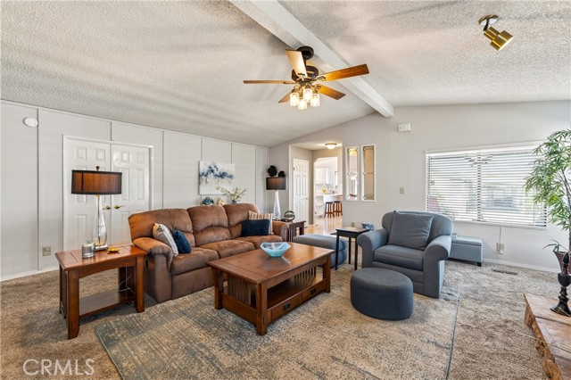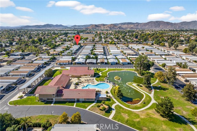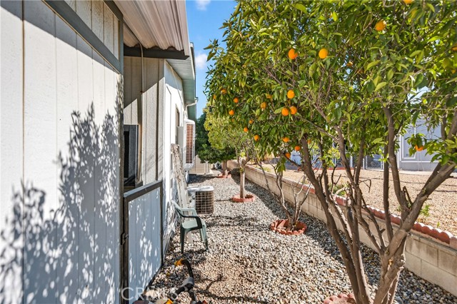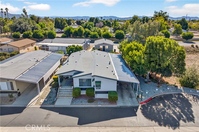 Welcome to Heather Estates, one of Hemet’s most desirable 55+ gated communities, offering upscale and active senior living. This gorgeous triple-wide manufactured home is situated on a large cul-de-sac lot with a peaceful greenbelt setting, mature fruit trees, a shaded sitting area, and no neighbors on the east side - providing rare privacy and tranquility. Enjoy morning coffee on the covered front porch and unwind in the spacious vaulted-ceiling living room filled with natural light. The beautifully updated kitchen features quartz countertops, subway tile backsplash, a deep stainless-steel sink, and new fixtures, flowing seamlessly into the dining and family areas. The primary suite includes a dual-sink vanity, a soaking tub, and a separate shower. Additional upgrades include:new 200-amp electrical panel with EV charging station, new swamp cooler installed (11/1/25), fresh interior paint, new blinds in family and dining room, updated sinks and faucets throughout, drip irrigation system, annual HVAC service completed, new laundry sink faucet. The property also includes a generous 8x22 storage shed. Heather Estates offers exceptional community amenities: clubhouse with pool and spa, library, gym, banquet hall with full kitchen, tv room, indoor shuffleboard, billiards, ping-pong, pickleball, and a private lake and greenbelt walking loop. Trash, water, and gate maintenance included. This is refined, comfortable living designed for the active retiree. Don’t miss this one.