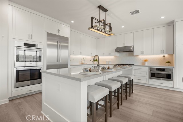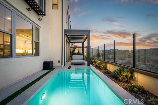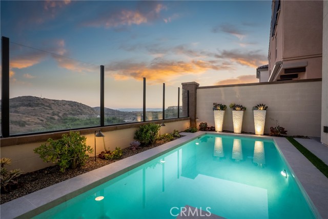 208 Canterbury in Irvine’s prestigious Sierra community by California Pacific Homes offers the perfect balance of sophistication, innovation, and comfort. Built in 2022, this two-story detached residence stands out as one of the few homes in the city featuring both a private pool and breathtaking panoramic views. With 2,548 sq ft of thoughtfully designed living space on a 3,154 sq ft lot and nearly $400,000 in premium upgrades, this four-bedroom, four-bathroom home is truly exceptional. The gourmet kitchen is a chef’s dream with a designer island, high-end countertops, a modern backsplash, custom cabinetry, and top-of-the-line appliances. The open-concept layout showcases luxury vinyl flooring throughout the first level, a striking floating staircase with integrated night lighting, and soaring ceilings illuminated by a statement chandelier. Every detail has been carefully considered—from the indoor fire pit and upgraded window coverings to whole-home Wi-Fi extensions. The resort-style backyard is designed for effortless indoor-outdoor living, featuring a saltwater pool/spool system with automated temperature, LED lighting, circulation, filtration, and water-level controls. The fully automated patio includes retractable screens, integrated lighting, dual infrared heaters, 220-volt outlets, and a wind sensor for comfort and convenience. Professionally landscaped with signature trees, porcelain-tiled surfaces, and large decorative planters, the outdoor space is ideal for year-round enjoyment. Additional highlights include an expanded driveway, architectural night lighting, epoxy garage flooring, custom cabinetry, a built-in shoe cabinet, an EV charging station, and an interior camera. Energy efficiency is maximized with 27 solar panels providing 10 kW capacity, while upgraded bathrooms with modern shower enclosures and premium finishes add to the home’s luxury appeal. Located within the top-rated Irvine Unified School District—Loma Ridge Elementary, Jeffrey Trail Middle, and Portola High—this residence blends modern design, cutting-edge technology, and energy efficiency in one of Irvine’s most desirable master-planned communities.